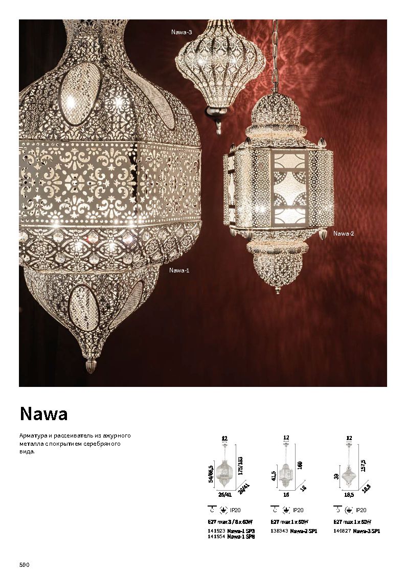 Арматура и рассеиватель из ажурного металла в виде серябрянного покрытия.