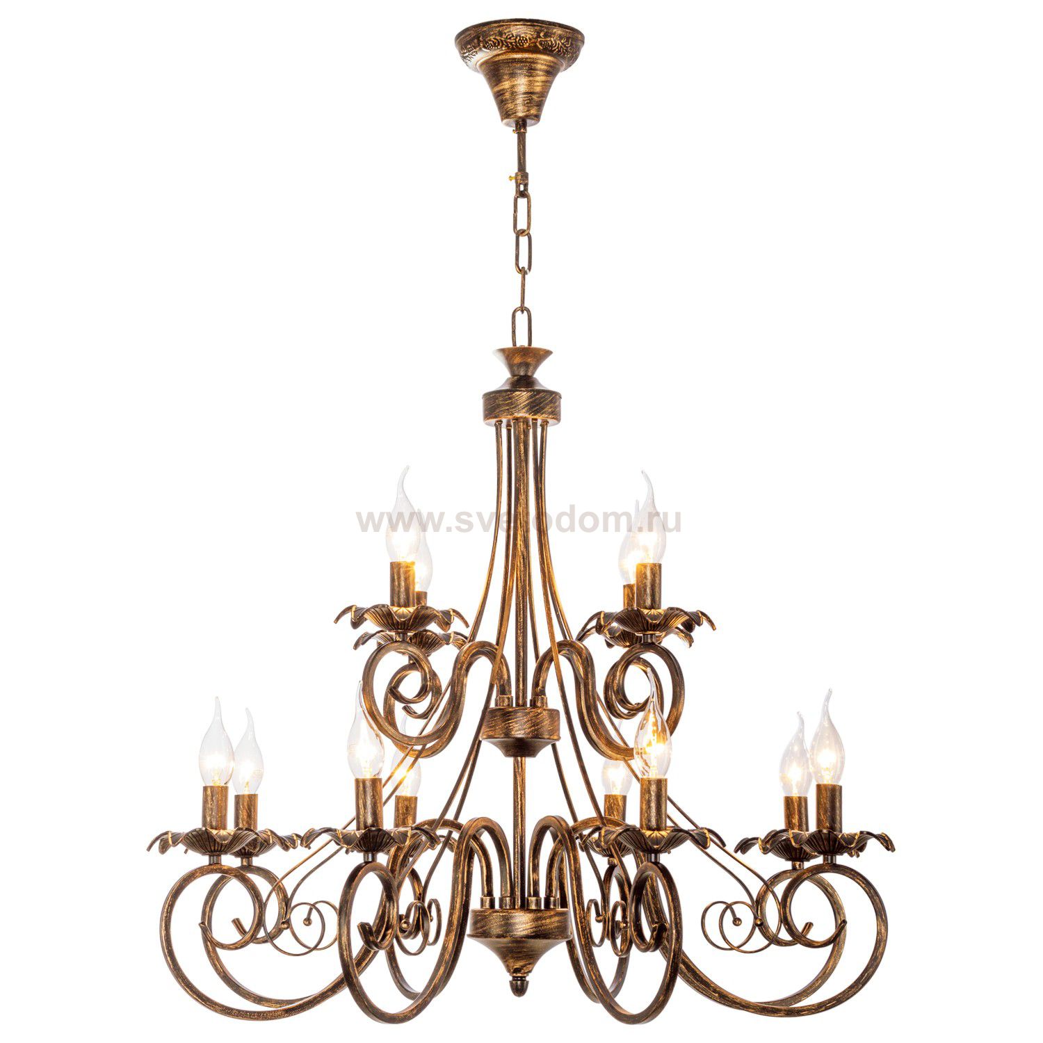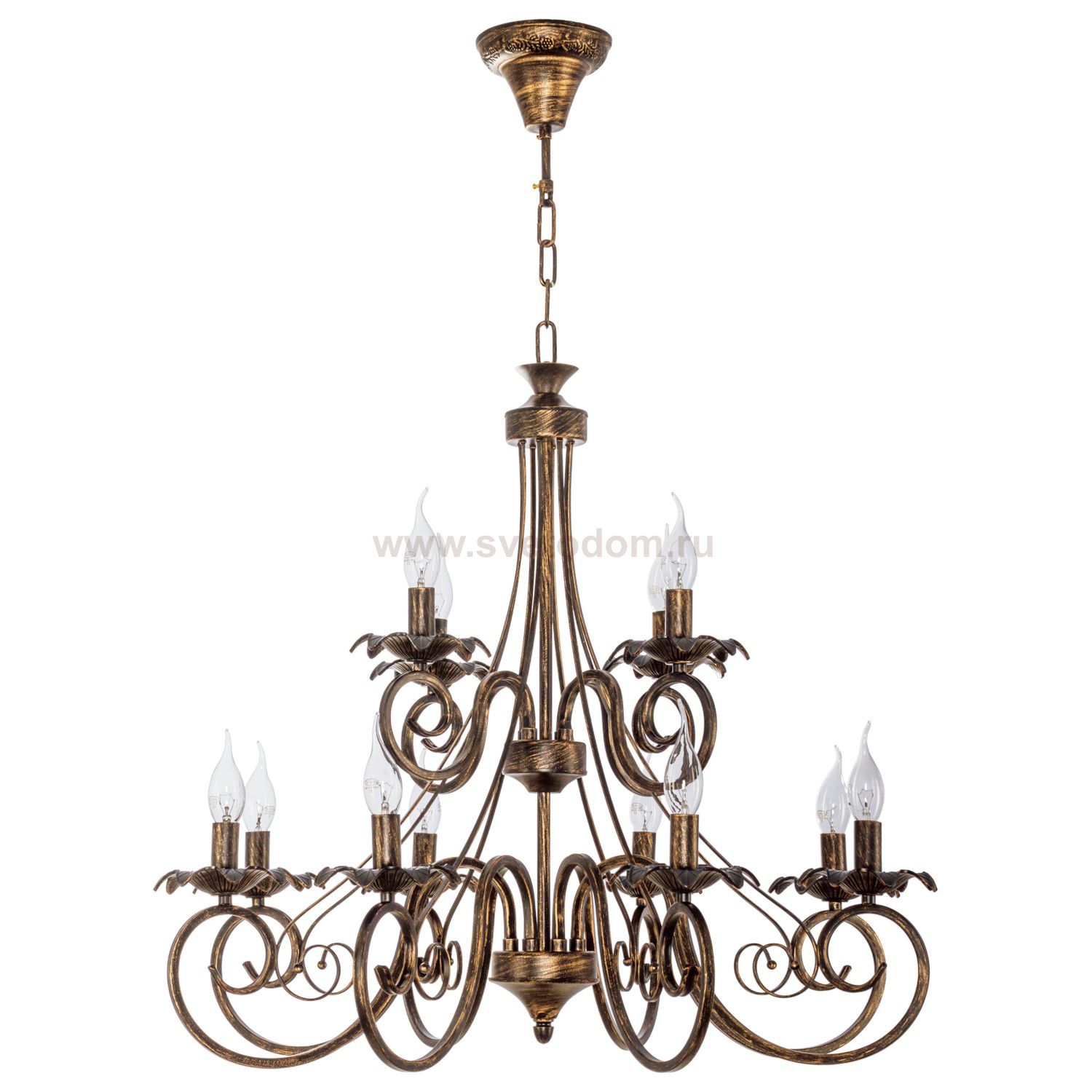 Люстра классическая 2828/12BG от бренда ЭкономСвет. Каркас выполнен из материала металл; цвета: коричневый и золото. Цоколь E14 рассчитан на лампы максимальной мощности до 40 Вт, а максимальная площадь освещения составит до 27 м?.