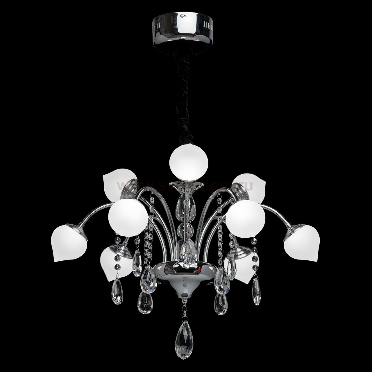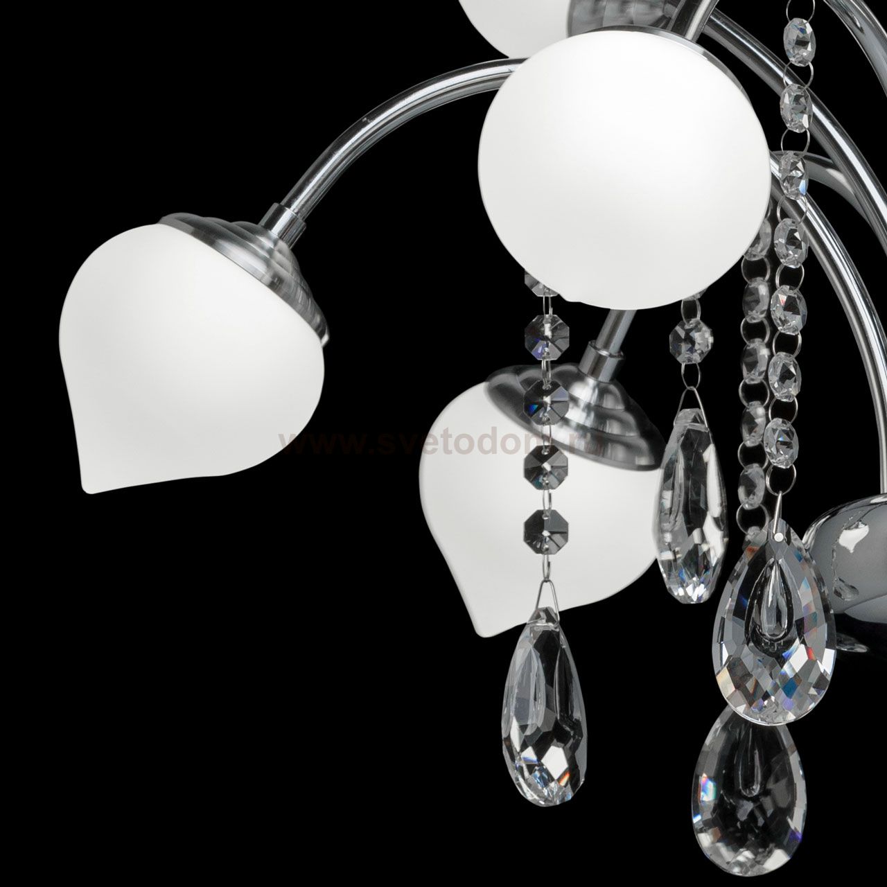 Металлическое основание цвета хрома, плафоны из акрила, декоративные подвески из хрусталя Материал плафона