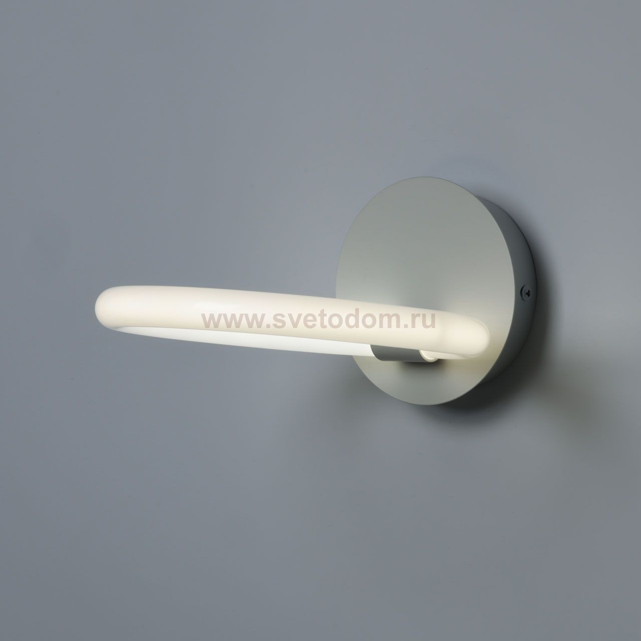 Металлическое основание настенного бра окрашено в белый цвет. Светодиодные источники света закрыты белым матовым акрилом. Комментарий