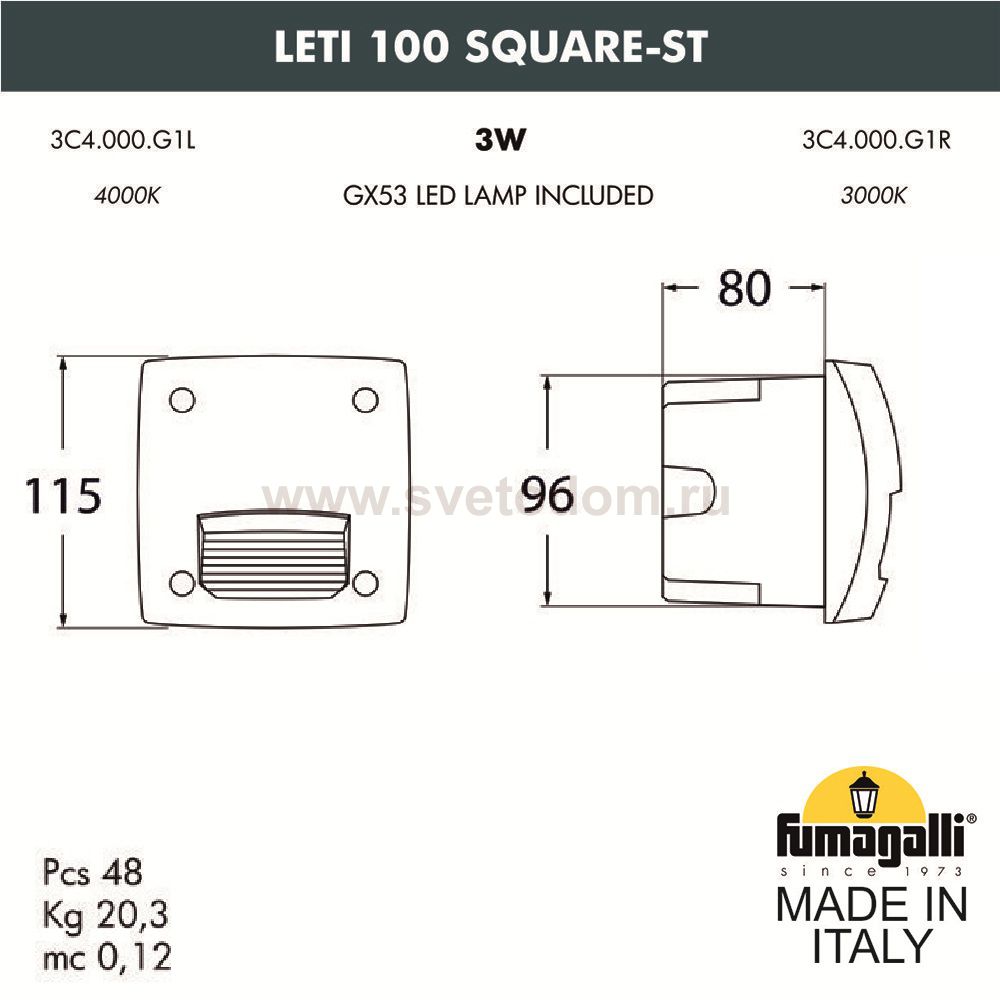 Касаемо артикула 3C4.000.000.AYG1L важно знать - Светильник для подсветки лестниц встраиваемый FUMAGALLI серии LETI, модель LETI 100 Square-ST - изготовлен в Италии. Основное назначение - мягкое, акцентное освещение небольших площадей, световой дизайн, ландшафтная подсветка. Отлично подходит для освещения лестничных маршей, коридоров, подпорных стенок, ландшафтного освещения. Устанавливается в вертикальные поверхности, например в стены, колонны, откосы ступеней. В поверхность монтируется и закрепляется закладной элемент "стакан", в который выводится электрический провод. Далее, в эту деталь устанавливается сам уличный светильник LETI и подключается электропитание. Корпус изготовлен из современного вандалостойкого, негорючего полимера RESIN не требующего окраски. Прочного, окрашенного в массе, не ржавеющего и не выгорающего на солнце. Все светильники пыле-влаго защищены по стандарту IP66. Корпус ландшафтного светильника не проводит электричество, относится к 2 классу электробезопасности. Рассеиватель выполнен из антивандального, не мутнеющего и не горючего PMMA. Срок службы светильника - не менее 20 лет. Не требуется трансформатор. Напряжение питания - 220 В. Температура использования от -60 до +90. При заказе требуется выбрать цвет корпуса.
