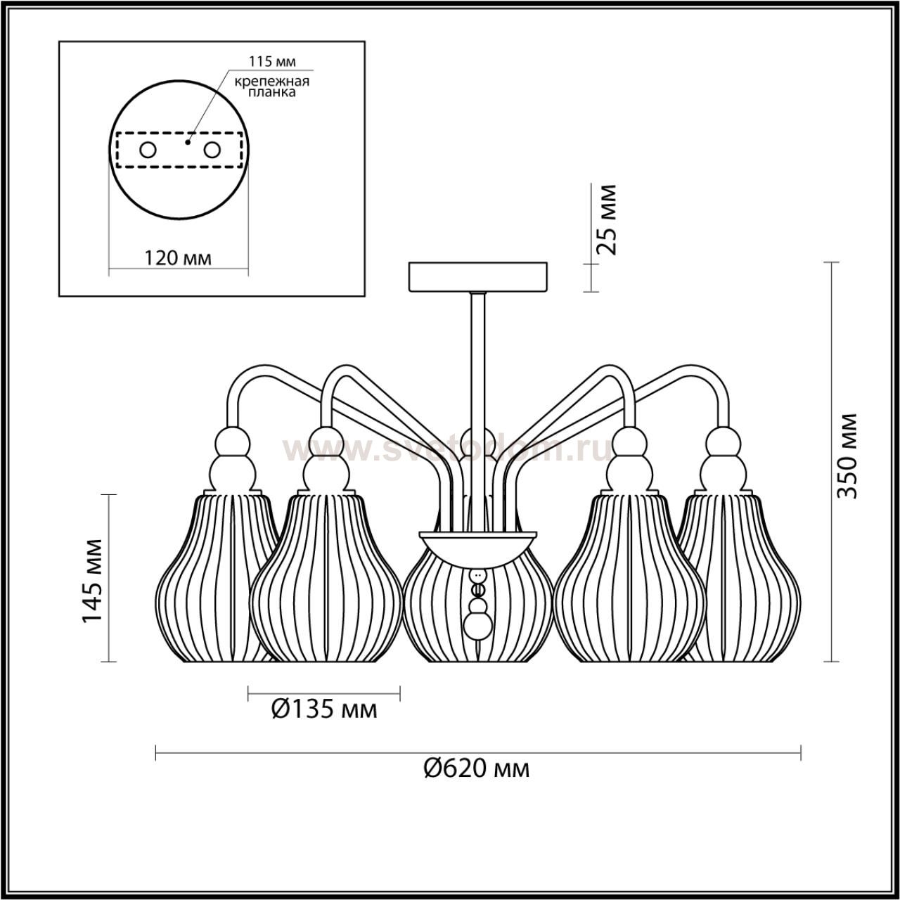 4562/5C MODERNI LN21 119 латунь Люстра потолочная E27 5*60W 220V ELEONORA Штрих-код