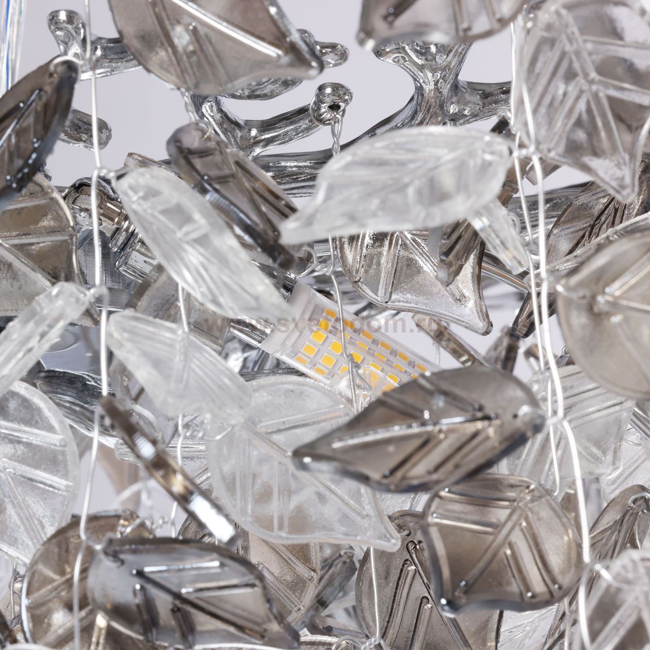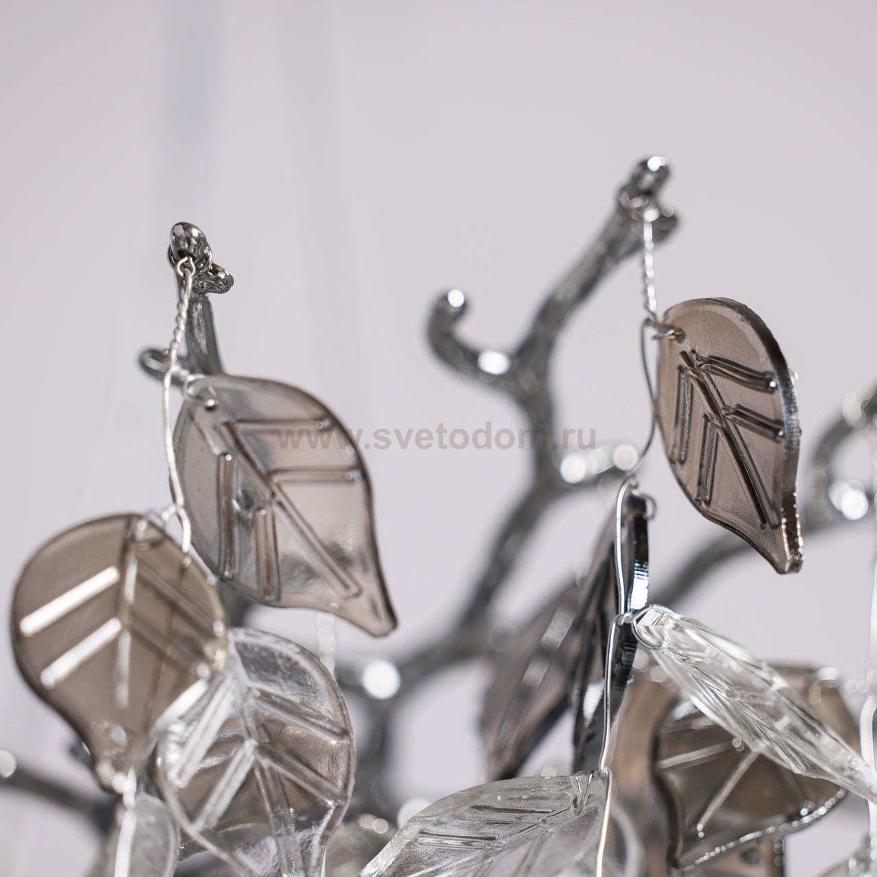 Современный дизайн с природными мотивами. Трендовая флористика, природа в доме. Декор в форме листьев из прозрачного и дымчатого стекла придает светильнику индивидуальность. Заменяемые источники света удобны в эксплуатации. Возможность регулировать комфортную высоту. Технология производства