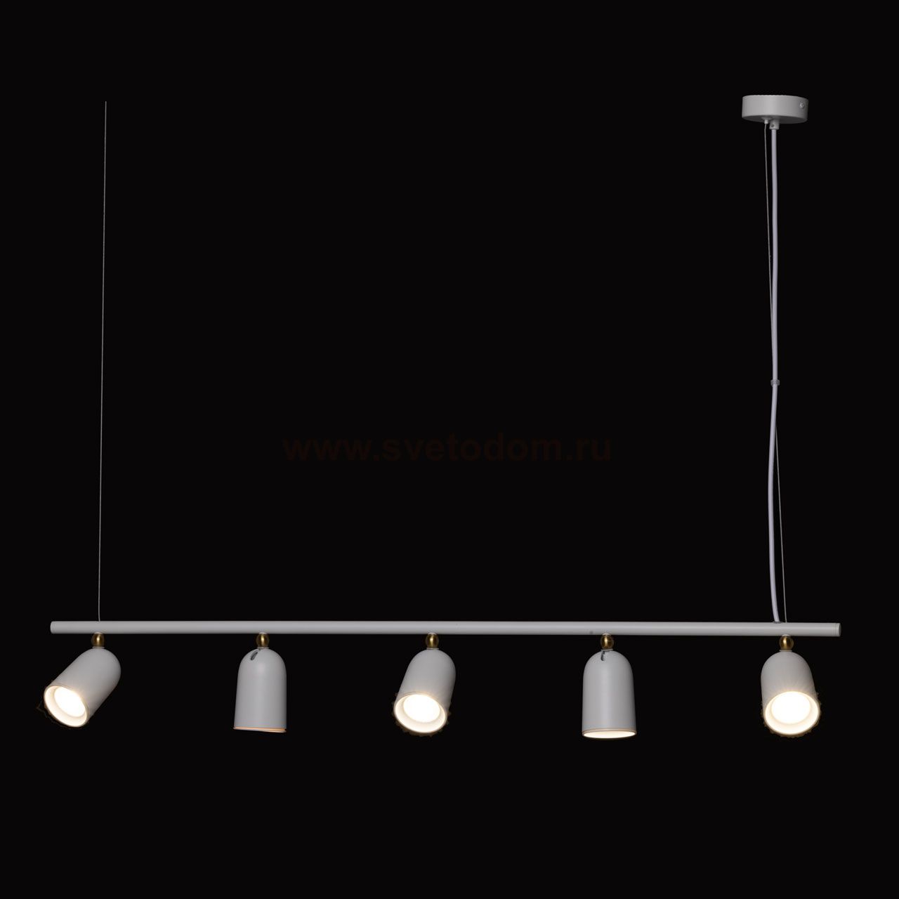 Металлическое основание подвесной люстры окрашено в белый цвет. Корпус плафонов выполнен из сплава алюминия с цинком и окрашен в цвет основания. Светильник декорирован металлическими сферами, гальванизированными в цвет латуни. Комментарий