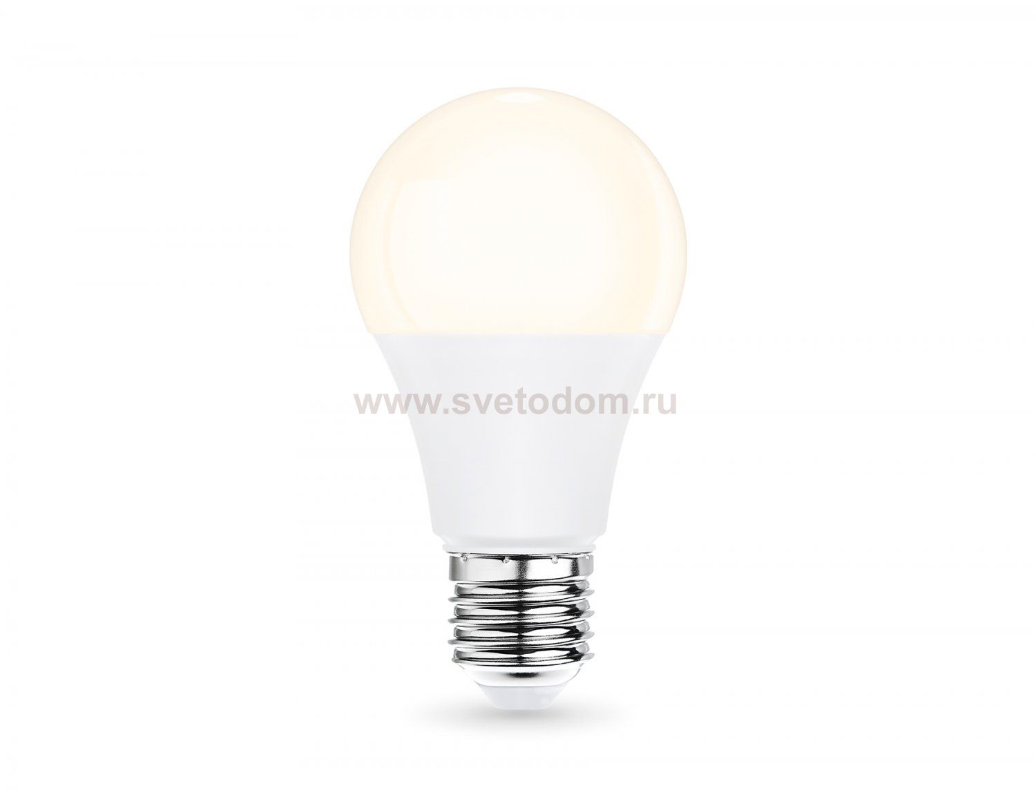 Светодиодная лампа A60, цоколь E27, мощность 10W, IC драйвер (защищает лампу от перепадов напряжения), класс энергоэффективности А, рассеиватель белый матовый, теплое свечение 2700K, форма "Лон", 60*108.