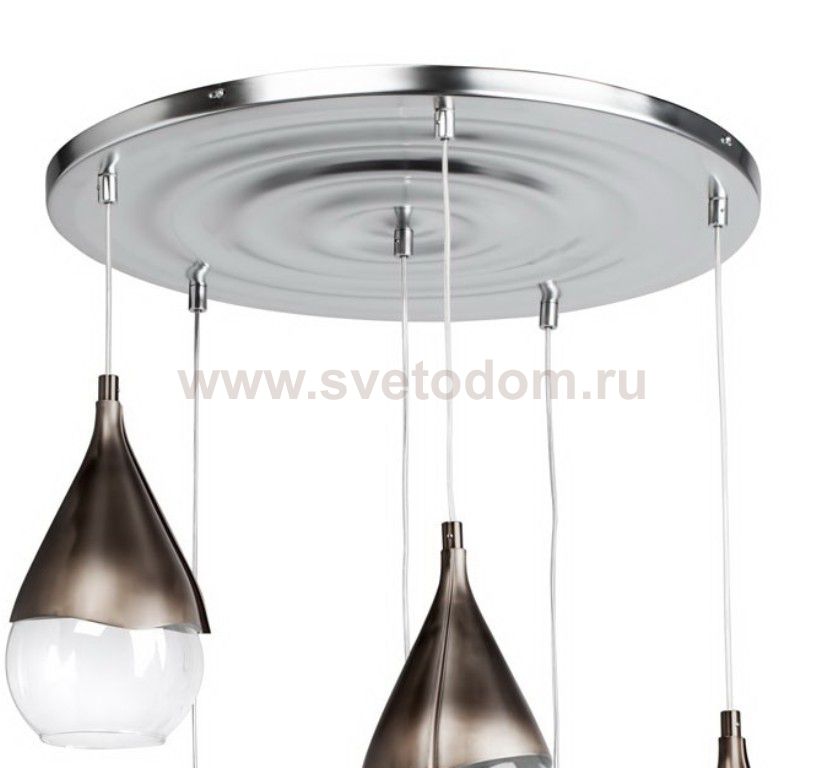 Описание модели 648010206: Несмотря на простоту форм, дизайн люстры из коллекции «Капли» весьма оригинален. Хромированное металлическое основание эффектно смотрится в тандеме с креплениями из металла цвета состаренной меди. Главная изюминка светильника – это нестандартные плафоны из прозрачного стекла в виде капель. Подобный светильник освежит обстановку и подчеркнет необычный вкус своего владельца.