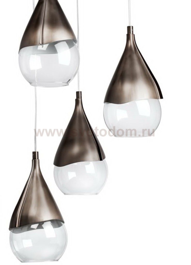 маталлческое крепление цвета меди с эффектом старения, плафоны из прозрачного стекла в форме капель Материал плафона