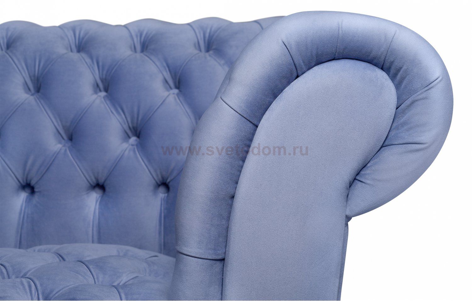 Обивка отделана каретной стяжкой – техникой украшения мебели, известной с XVIII века в Западной Европе (там ее называют стяжкой «Капитоне») и в России. Ткань простегивается и закрепляется декоративными обтяжными пуговицами, образуя красивый геометрический узор. Велюр долговечный и долго сохраняет первоначальную расцветку и форму.