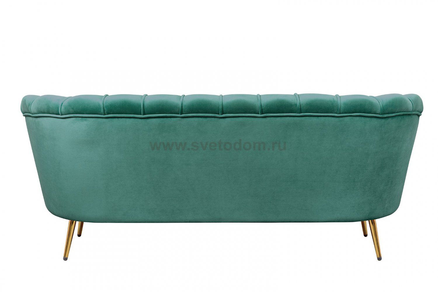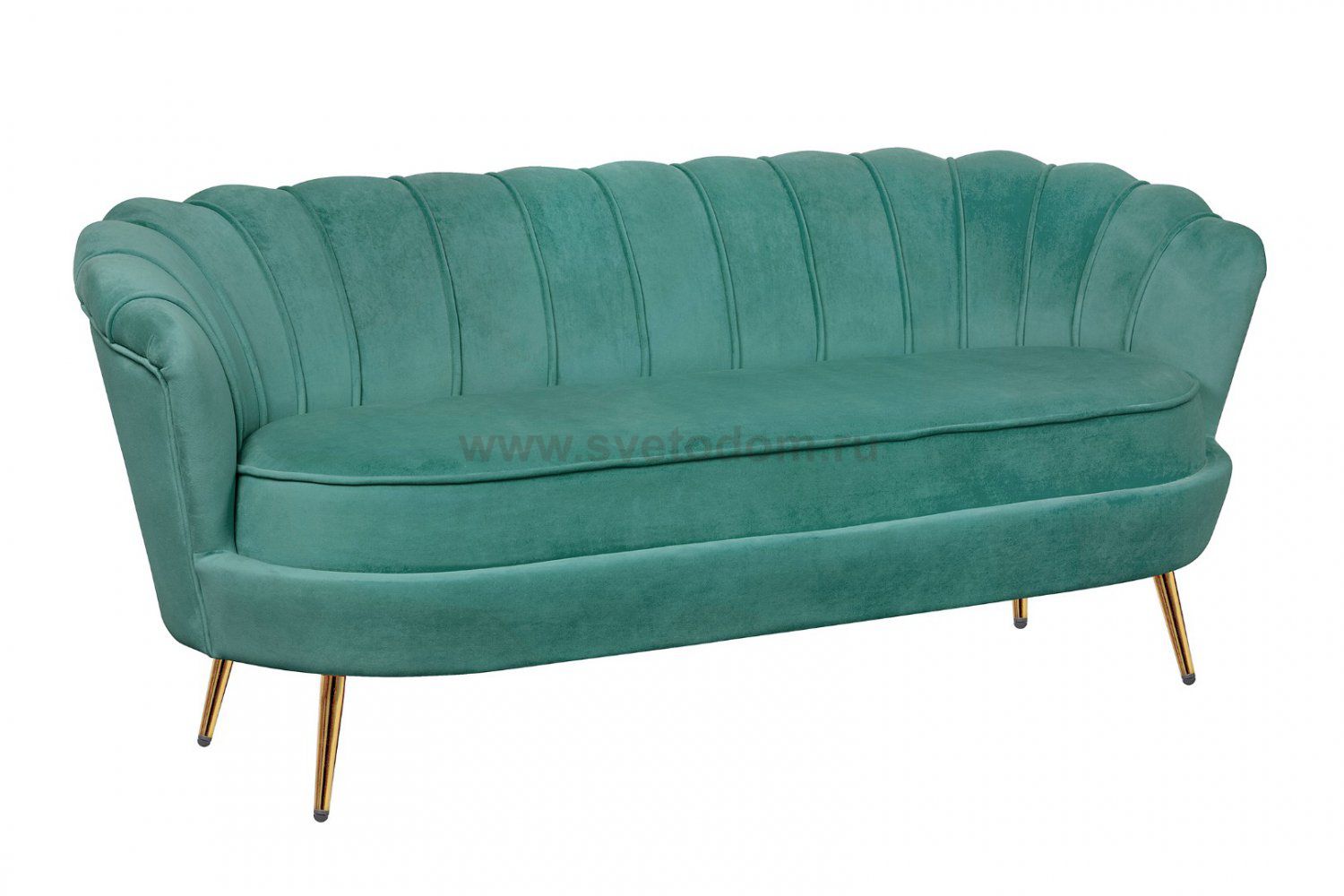Зеленый диван с обивкой из велюра Pearl triple green на основе каркаса из натурального дерева, с бархатистой велюровой обивкой, декорированной продольными стежками на внутренней стороне спинки. Модель выполнена в зеленом цвете, по форме напоминает створку раковины, огибающей жемчужину – круглую подушку для сидения. Короткие металлические ножки с блестящей золотистой поверхностью расходятся в виде лучей под небольшим наклоном к основанию. Мебель роскошно выглядит и подходит для оформления элитных интерьеров.