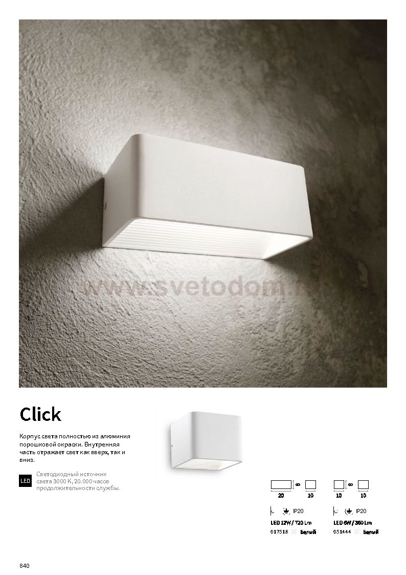 840 Отзывы Ideal Lux CLICK AP D20Пока нет отзывов об этом товаре, напишите и он обязательно появится после модерации! Оставить свой отзывПохожие товары Другие товары магазина Фото