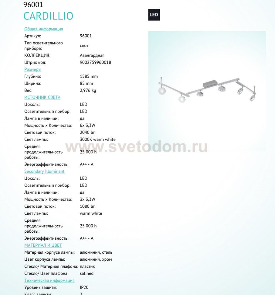 Светодиодный спот c доп. подсветкой CARDILLIO, 6х3,3W(LED), 3х3,3W(LED), L1585, алюм., сталь, хром/пластик, матовый применяется преимущественно в домашнем освещении с использованием стандартных выключателей и переключателей для сетей 220V.