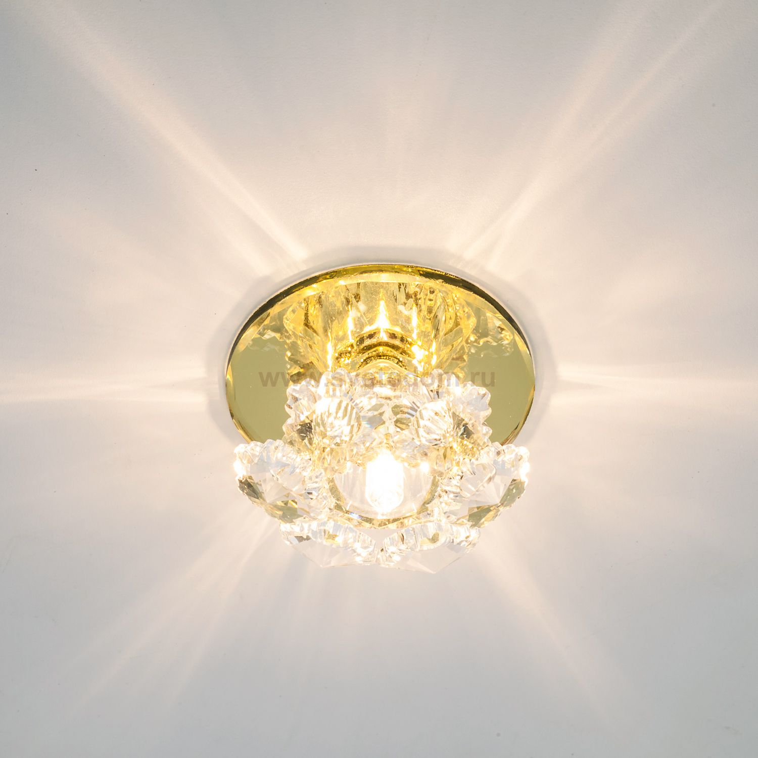 Точечный светильник F3580 YL CL от бренда ЭкономСвет. Каркас выполнен из материала стекло, цвет зеркальный желтый. Цоколь G4 рассчитан на лампы максимальной мощности до 35 Вт, а максимальная площадь освещения составит до 2 м?.