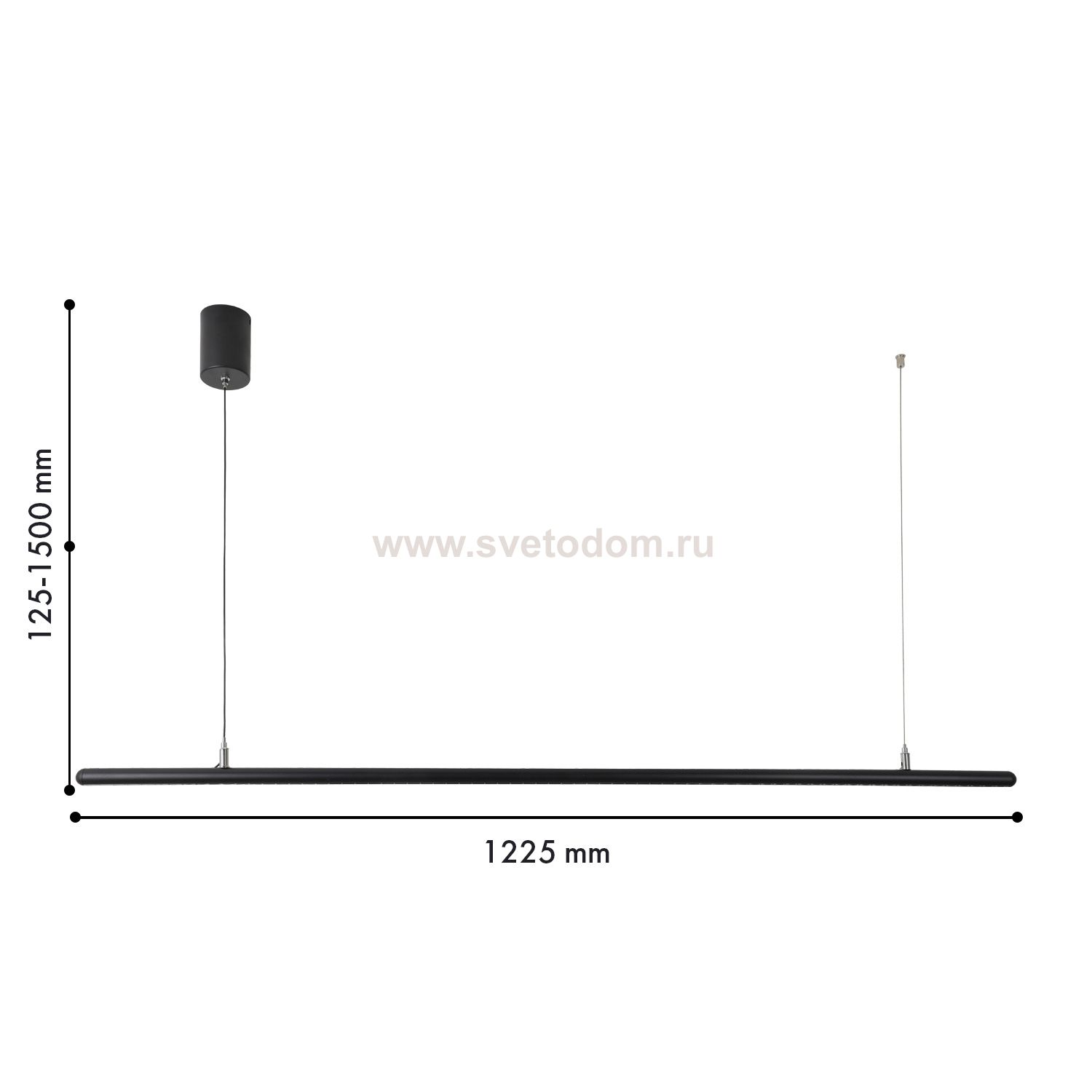 Тонкий цилиндрический подвес в черном цвете, длиной 1,2м с направленным вниз источником света LED Серия
