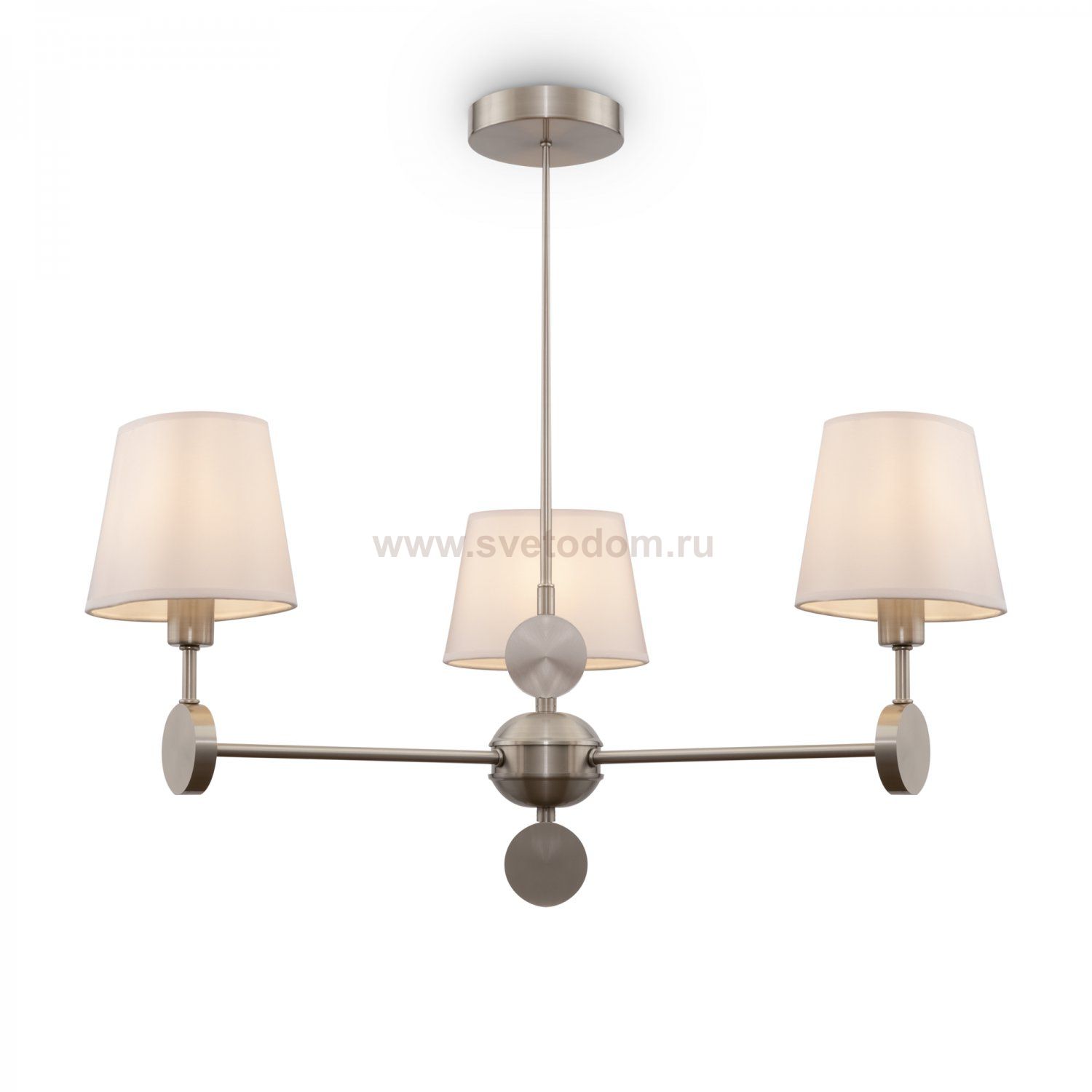 Металлическая арматура. Цвет – никель. Сатиновые абажуры оригинальной формы. Актуальное сочетание геометричных линий и округлых силуэтов. Одиночный подвес с цоколем Е27, лампа, бра и люстры – Е14.
