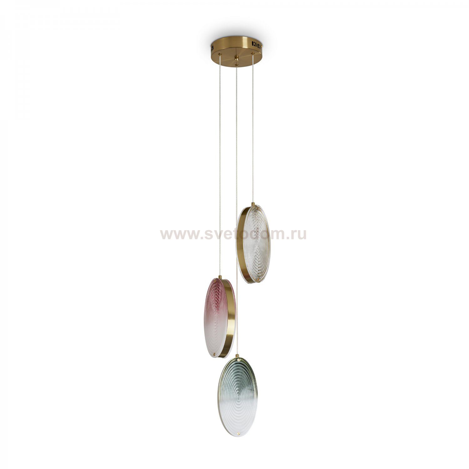 Арматура металл. Цвет латунь. Плафон из подкрашенного стекла. Одинарные подвесы 3 х цветов и в том числе популярный каскад сочетающий в себе три цвета подвесов. LED источник света. Цветовая температура 3000К.