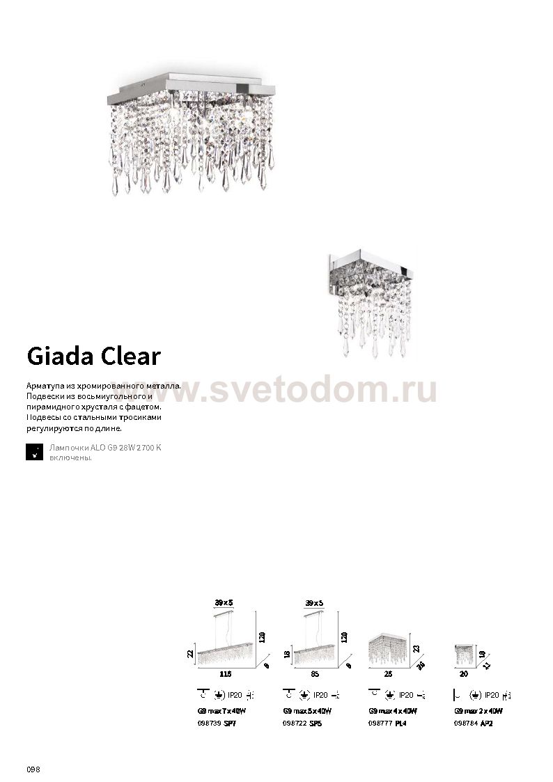 Ideal Lux GIADA CLEAR PL4 Потолочный светильник сделает Ваше помещение современным, стильным и запоминающимся! Наиболее эстетически привлекательно и функционально модель будет смотреться как в зале, гостевой, холле или другой комнате. А в совокупности с настенными или напольными светильниками из этой же коллекции, сделает интерьер по-дизайнерски законченным и профессиональным.