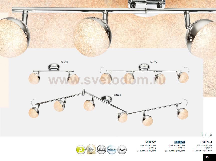 Спот Globo 56127-6 UTILA отличается поворотной способностью регулировки светового потока и сделает Ваше помещение современным, стильным и запоминающимся! Наиболее функционально и эстетически привлекательно модель будет смотреться в гостиной, зале, холле или другой комнате. А в комплекте с люстрой, бра или торшером из этой же коллекции сделает интерьер по-дизайнерски профессиональным и законченным.