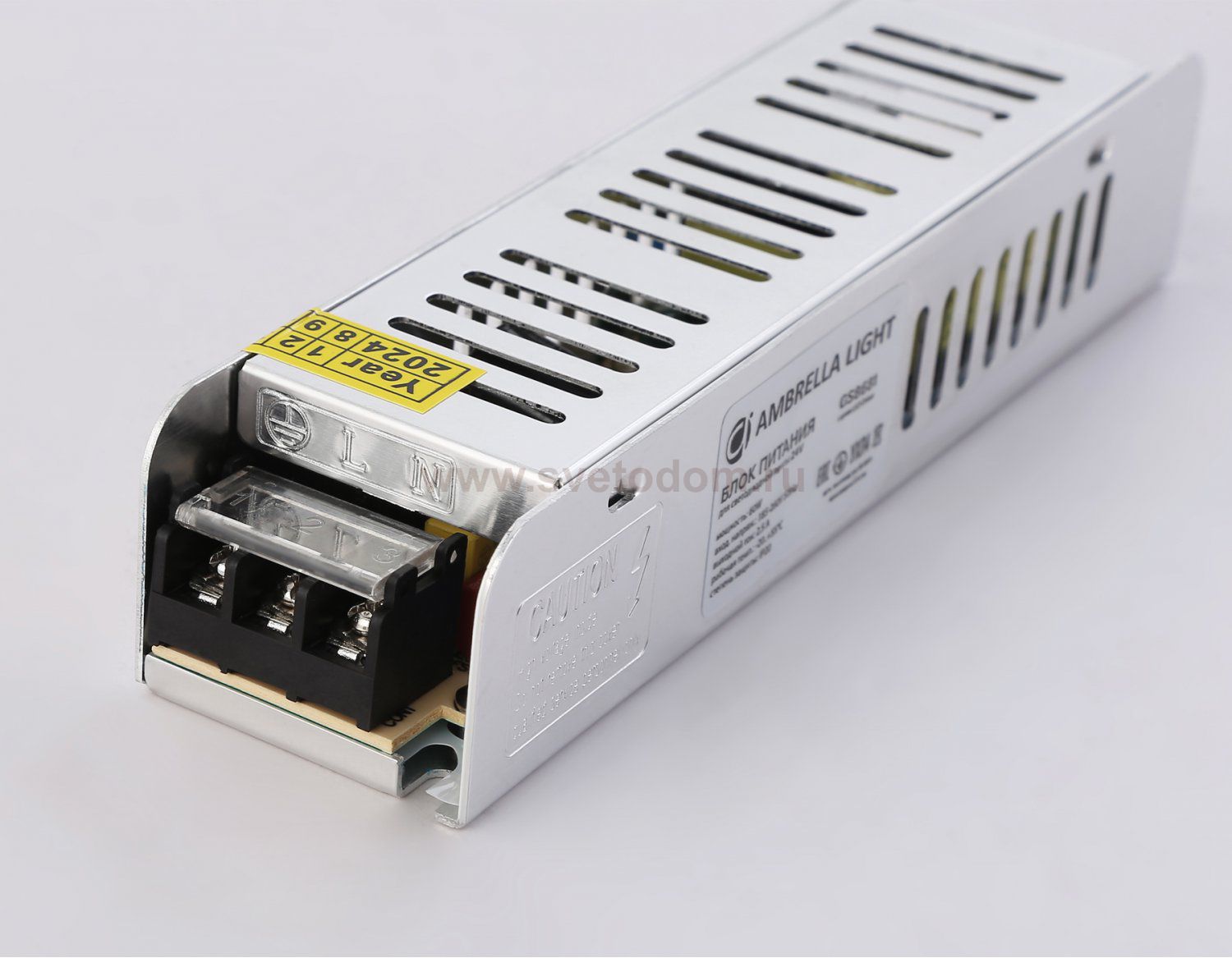 Блок питания с алюминиевым корпусом для светодиодных лент и прочих устройств с напряжением 24V. Устройство имеет надежную схему защиты от коротких замыканий, сетевых помех и скачков напряжения. Блоки питания коллекции ILLUMINATION используется для питания светодиодных изделий стабилизированным напряжением 24В (блок питания 24 вольт) для подсветки внутри сухих помещений. Блок питания должен быть мощнее чем светодиодная лента на 15-20%. Светодиодная лента подключается параллельно, отрезками не более чем по 5 метров каждый. Блок питания без влагозащиты.