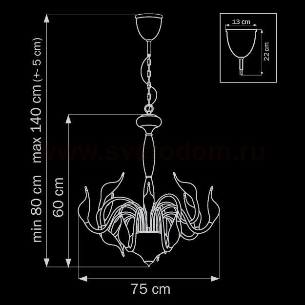 Максимальная потребляемая мощность лампы, которую можно использовать в люстре.