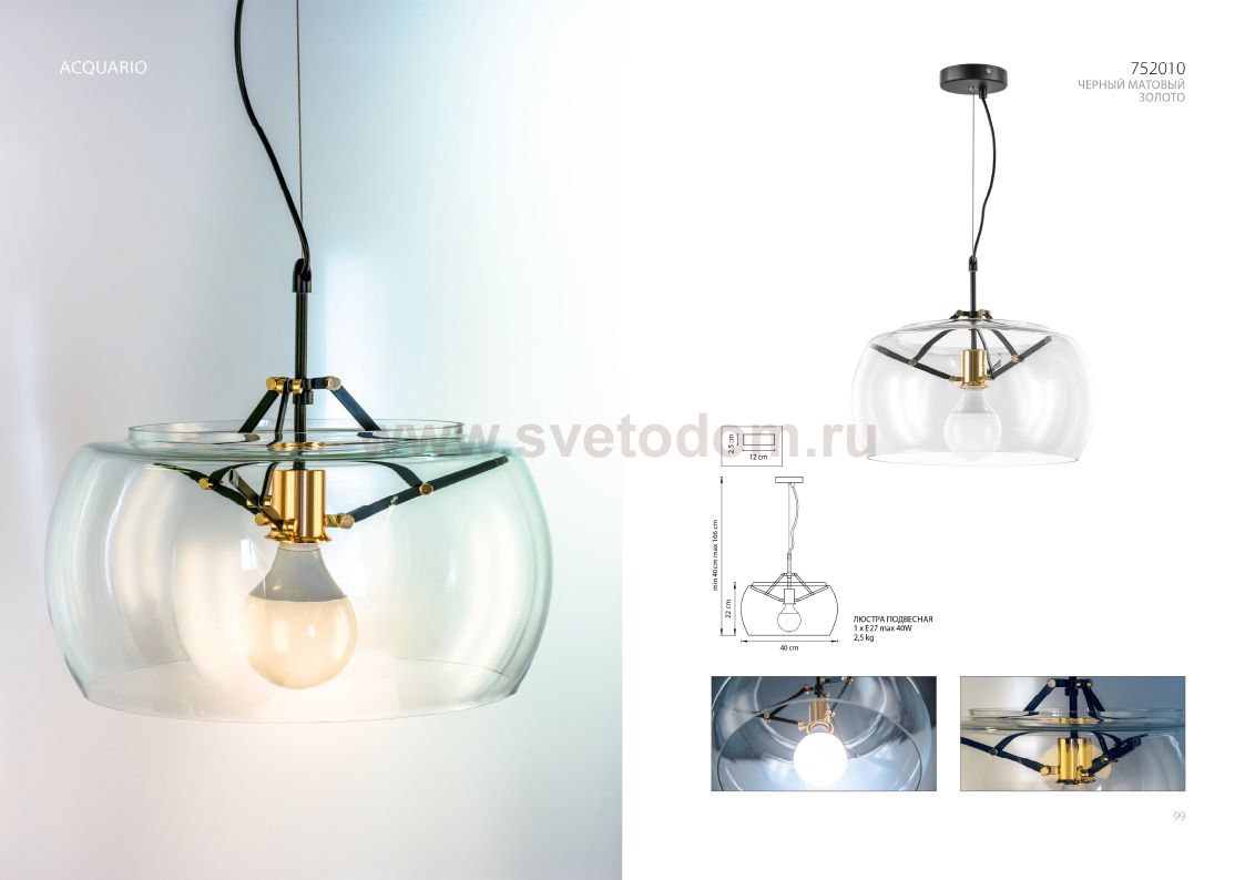 752010 Люстра ACQUARIO 1х40W E27 ЧЕРН МАТОВ/ЗОЛОТО стекло Комментарий