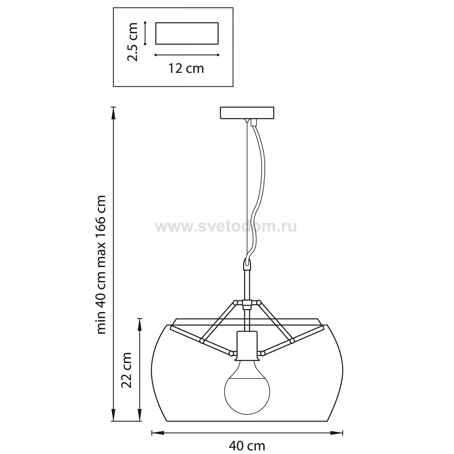 Высота min-max (см): 40-166; Ширина (см): 40; Вес (кг): 2,5; Кол-во ламп: 1xE27; Мощность max (W): 40; Цвет основания/цвет стекла или абажура: Matt Black & Gold/ Clear crystal;