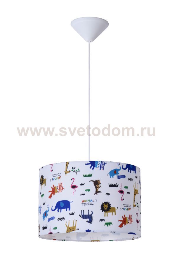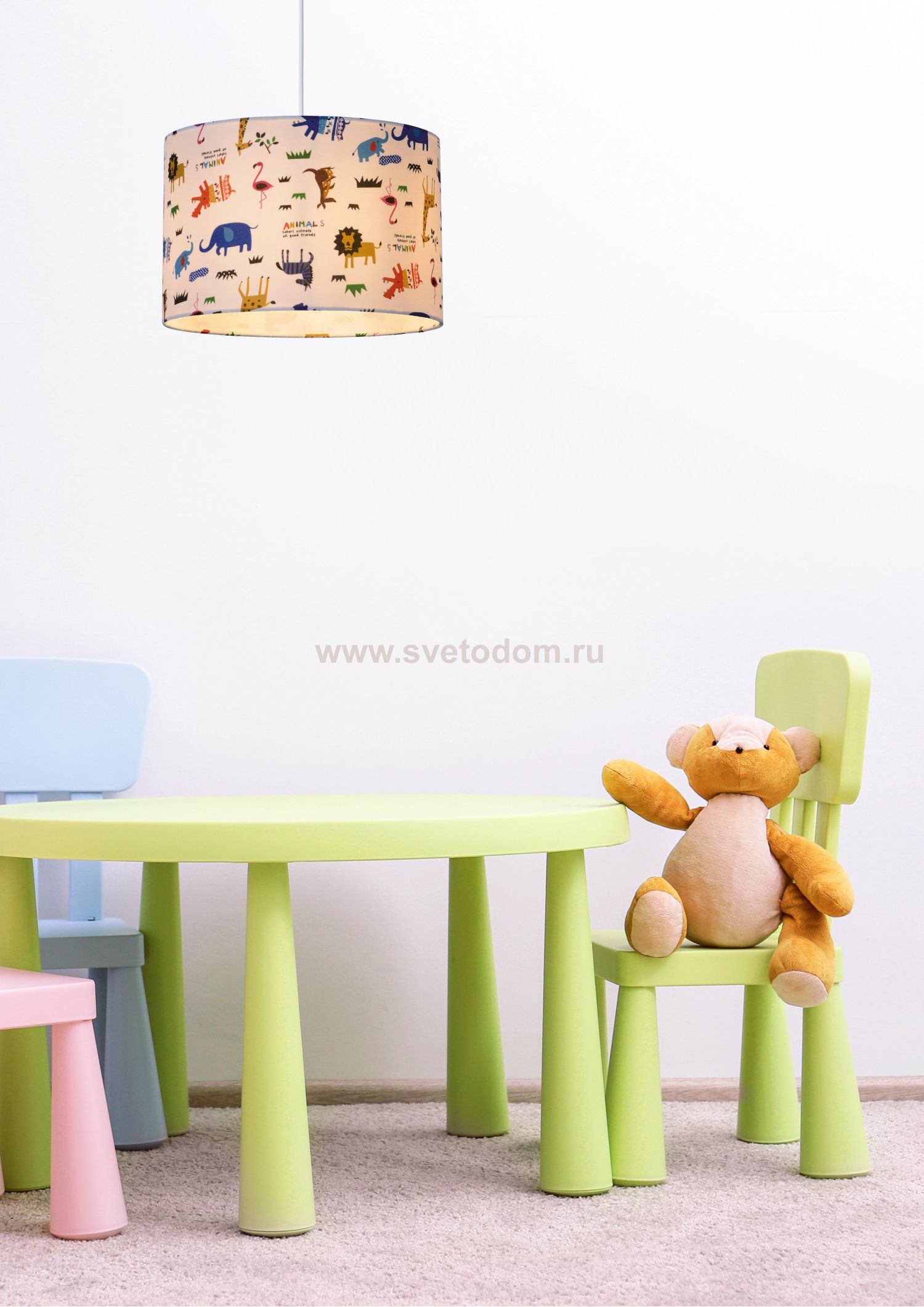 Bring some atmosphere and cheerfulness into your children's room. This pendant lamp has a very nice print on the open lampshade. On the pendant lamp, there are inviting figures that will bring a smile to your children's faces. With some childlike imagination, the hanging lamp creates a great many new adventures. The lampshade has a diameter of 30 centimetres. You choose the length of the cord yourself during installation. The lighting is specially designed for safe use in a children's room and is compatible with a dimmer.