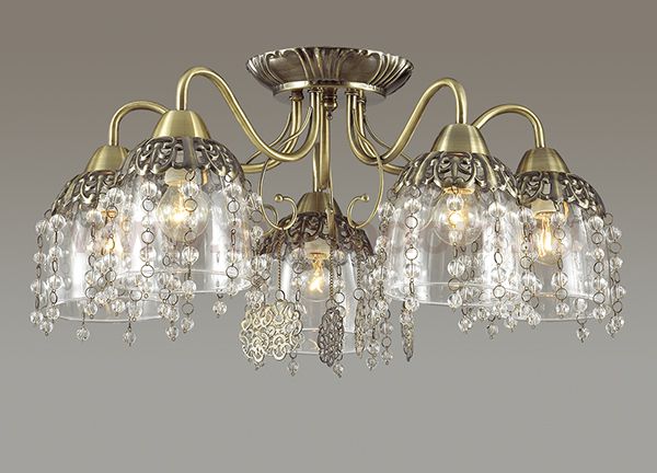 Люстра потолочная 3244/5C серии Doriana оформлена в классическом стиле. Люстра состоит из утонченных стеклянных плафонов с ажурным металлическим декором, щедро украшенных хрустальными подвесками, и классической арматуры бронзового цвета с утонченными металлическими подвесками. Данная модель являет собой пример изящества, утонченности и великолепия. Цоколь E14. Мощность 5x60W. Нет ламп в комплекте.