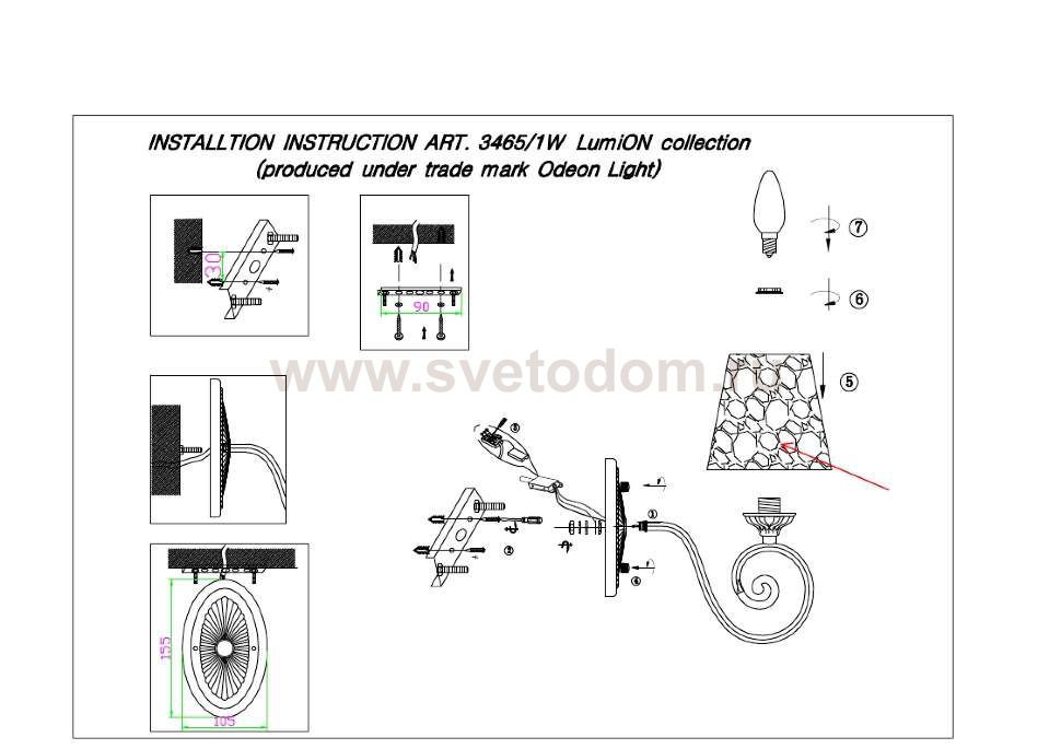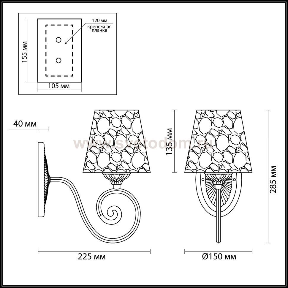 Арматура, декор: металл, хрусталь, абажур металл Материал плафона