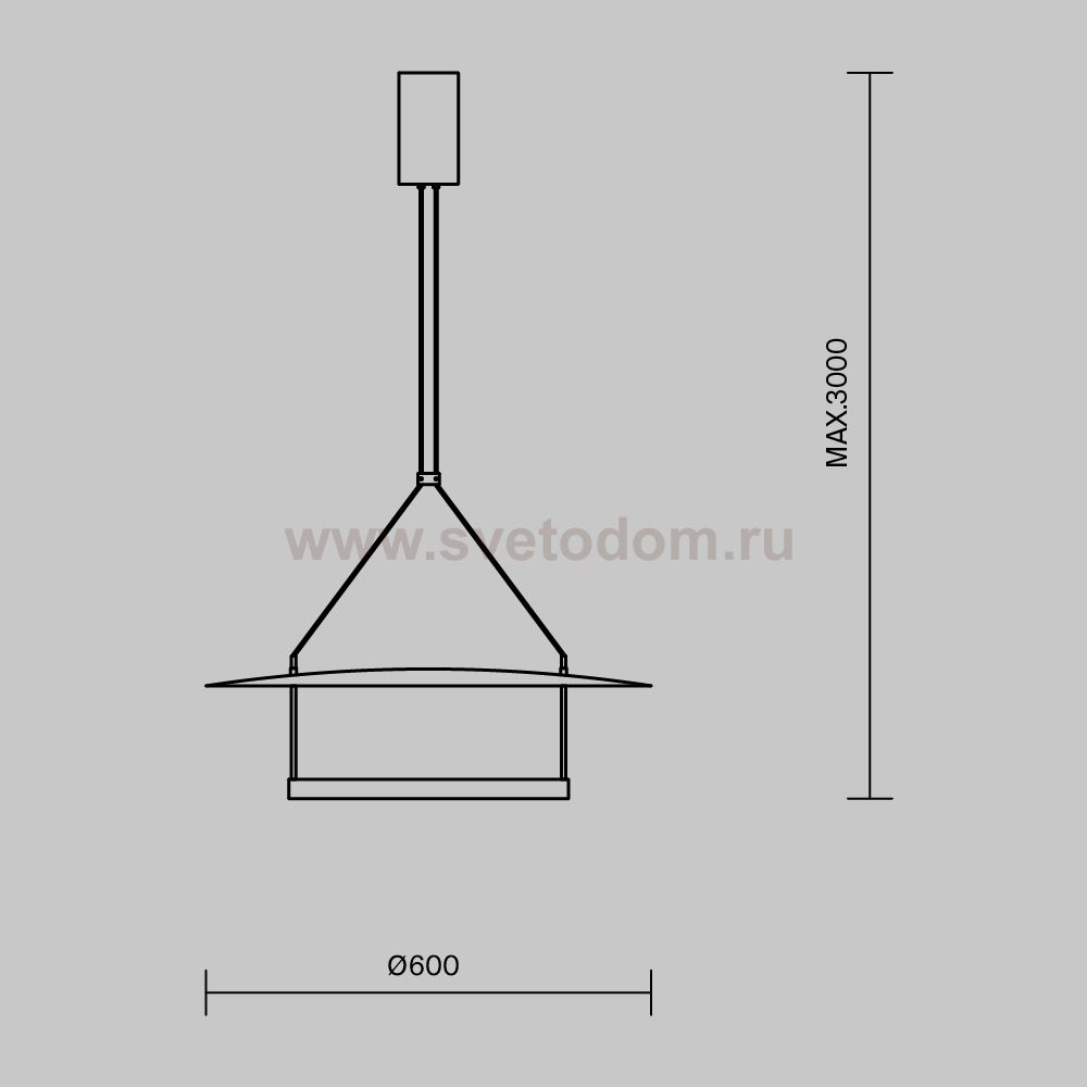 600 Нижний диаметр абажура, мм
