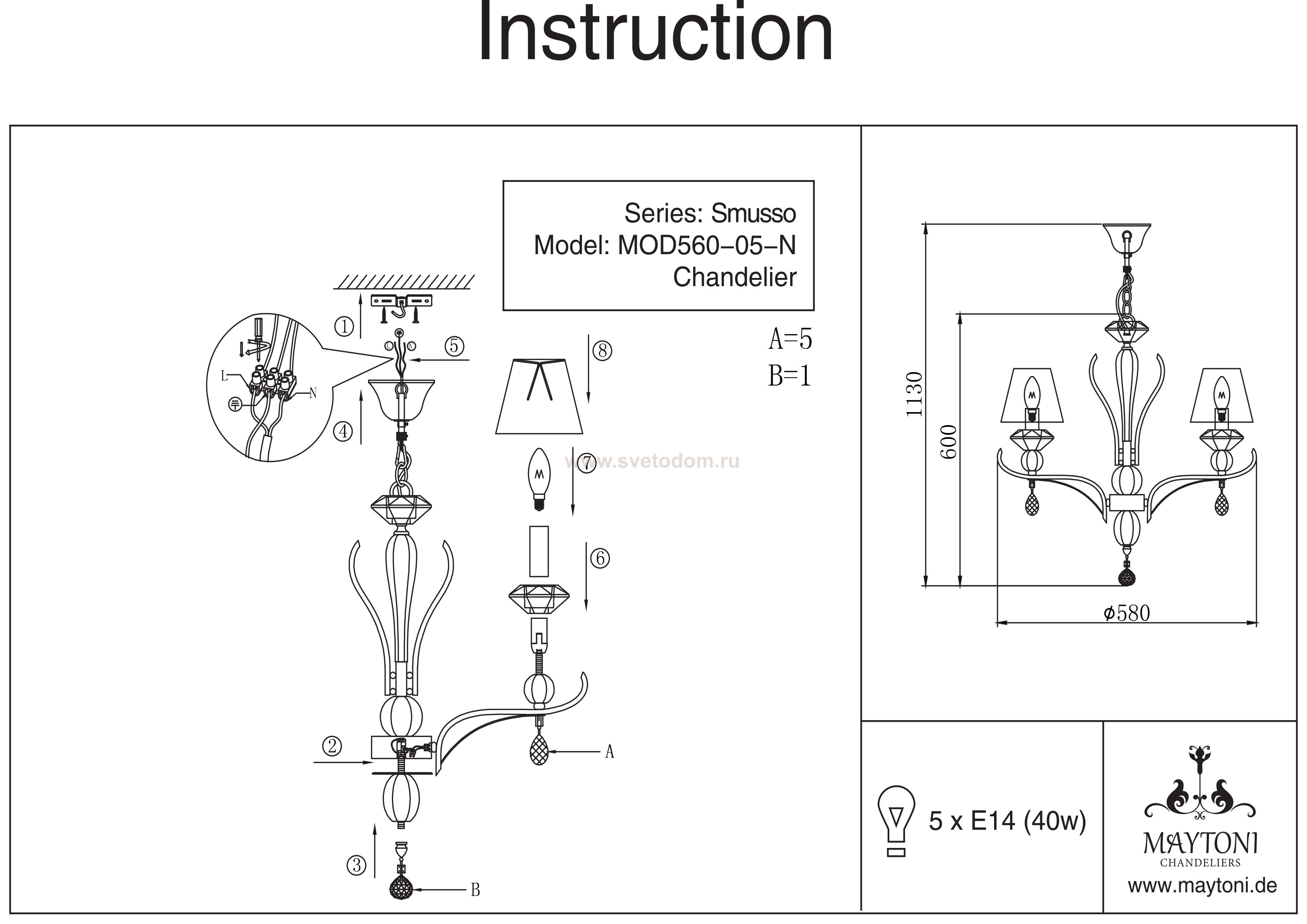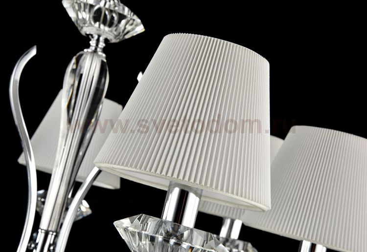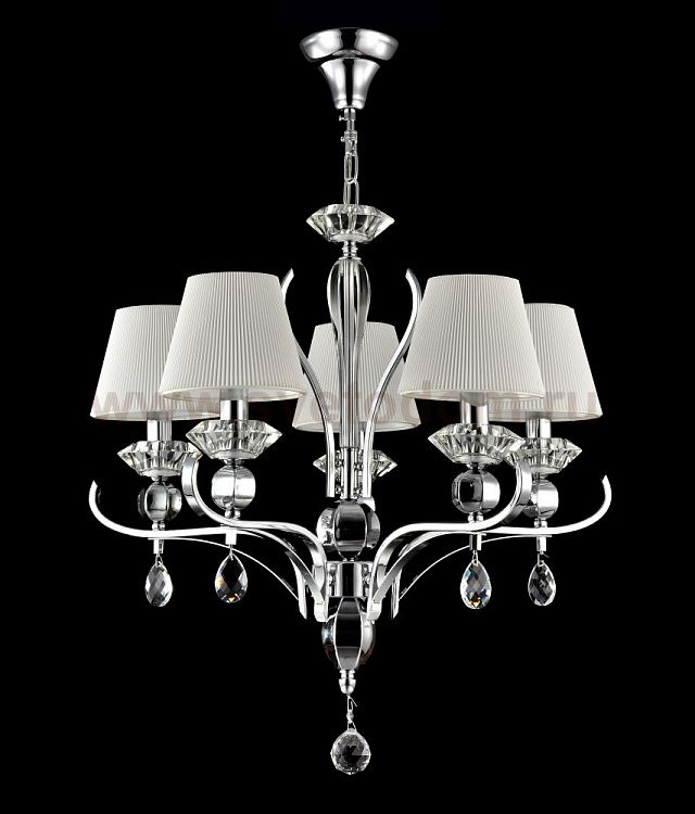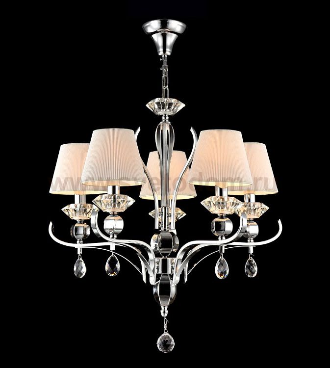 Особенности модели MOD560-05-N: Чтобы наполнить современностью облик светильников, сформированный классическими линиями, в конструкцию были добавлены элементы из массивного граненого стекла и металла. Абажуры изготовлены из гофрированного хлопка на ПВХ. Светильники деликатно украшают подвески из кристаллов каплевидной формы. Высота люстр регулируется длиной цепи.