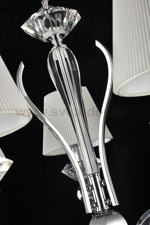 Арматура из металла. Абажуры из гофрированного белого материала. Подвески из *хрусталя. Дополнительно