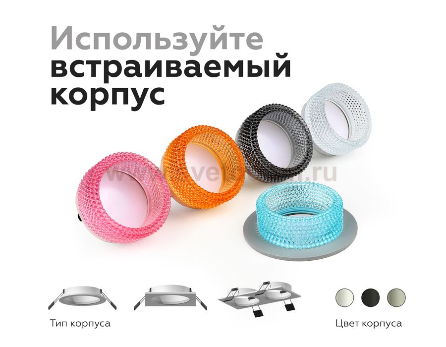Коллекция DIY Spot предназначена для создания индивидуального светильника, под каждый стиль и интерьер. В многочисленных моделях этой коллекции вы сможете подобрать насадку, любого цвета, материала и текстуры к любому корпусу Коллекции DIY Spot. Насадки могут быть двух типов: передняя, которая уникально украсит ваш корпус и задняя, благодаря которой, возможен любой тип крепления: накладной, подвесной или трековый. Насадки, диаметром 60мм, подойдут к корпусам с диаметром отверстия 60мм.