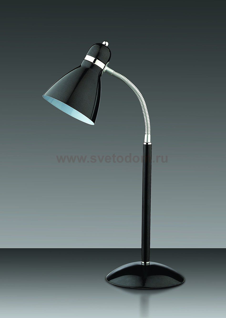 Настольная лампа 2410/1T линии Mansy состоит из металлического основания цвета черный металлик и металлического плафона, мягко рассеивающего свет. Цоколь E27. Мощность 1*60W. Нет ламп в комплекте.
