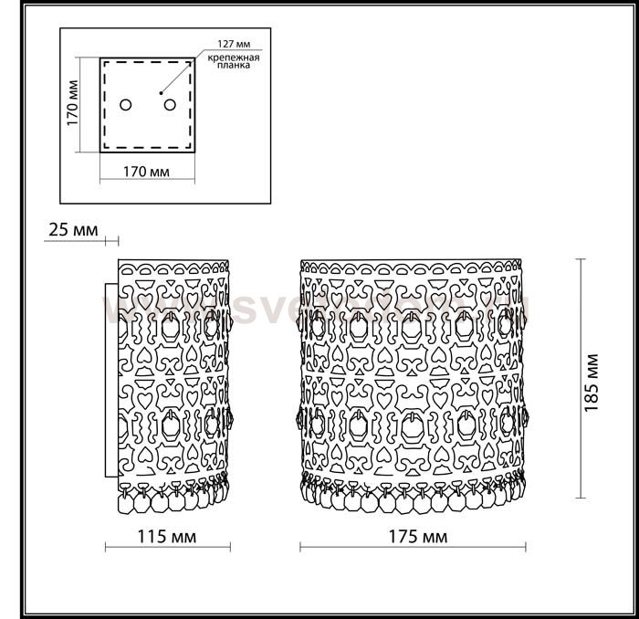 плафон: в виде металлического каркаса, арматура: металл, декор: хрусталь Материал плафона