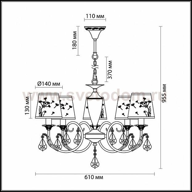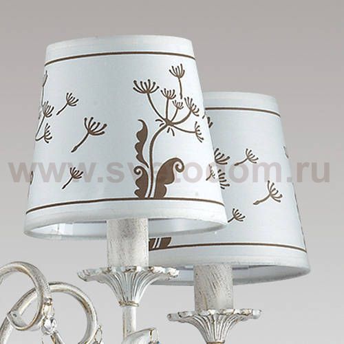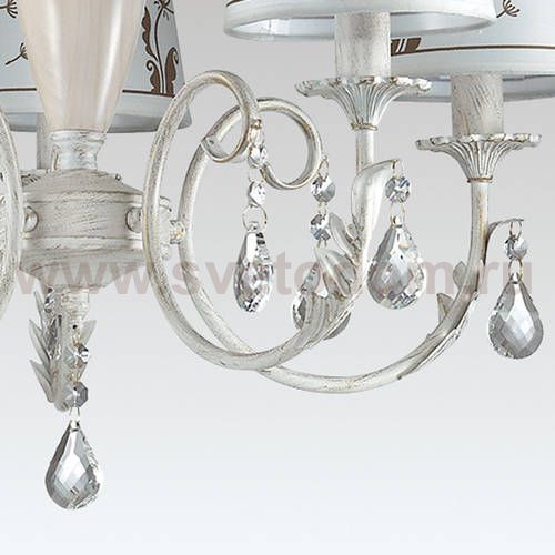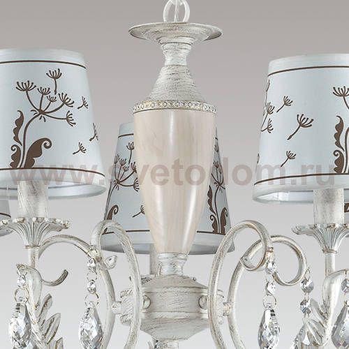 Арматура, декор: металл, дерево, хрустальные подвески, центральная штанга украшена деревянным элементом; плафон: тканевый абажур с цветочным рисунком Материал плафона
