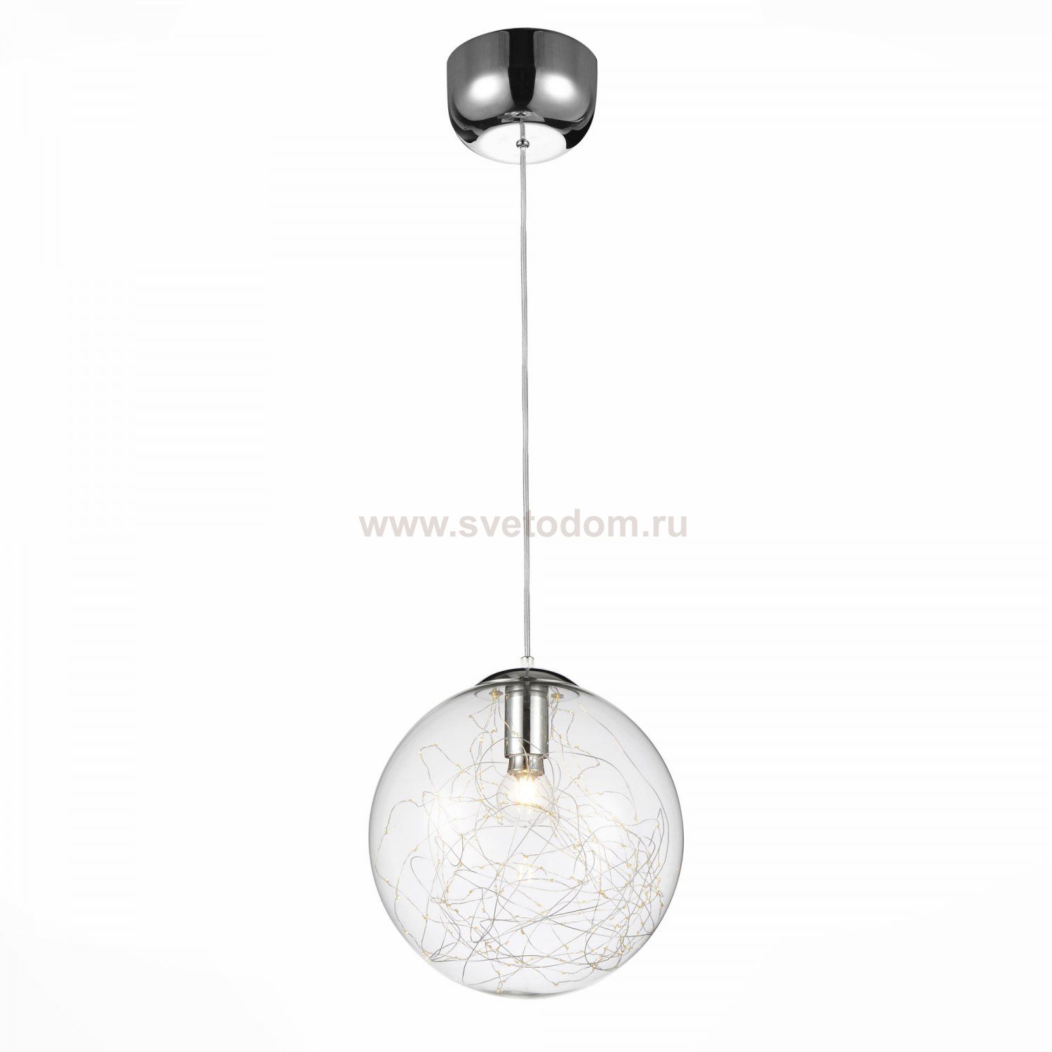 Если Вы настроены купить светильник модели SL27410301, то обратите внимание: Что может быть проще : взяли большой стеклянный прозрачный шар, закрепили его на хромированном металлическом основании, установили лампу накаливания и добавили гирлянду светодиодов? Но случилось волшебство… Коллекция светильников Strego - настоящая сказка в вашем доме, чарующая, загадочная, завораживающая. И все вокруг под светом этой люстры становится необычным, открывается с новых ракурсов, окутывается флёром романтизма и мечтательностью. Светильники коллекции Strego прекрасно дополнят современные интерьеры в стиле минимализм, техно или хай тек.