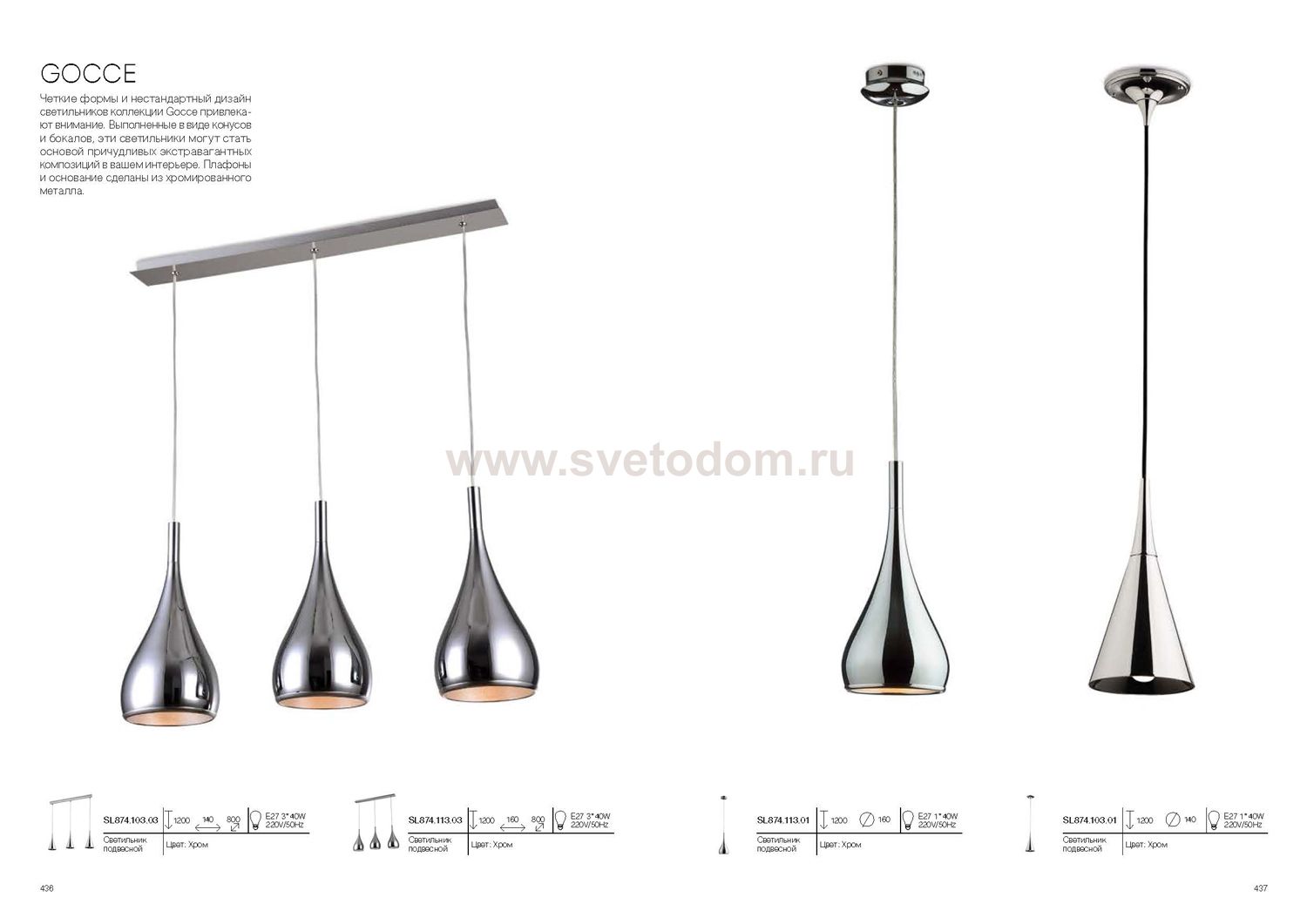 Касаемо коллекции модели St luce SL874.113.01 хотелось бы отметить основные моменты: Четкие формы и нестандартный дизайн светильников коллекции Gocce привлекают внимание. Выполненные в виде конусов и бокалов, эти светильники могут стать основой причудливых экстравагантных композиций в вашем интерьере. Плафоны и основание сделаны из хромированного металла.