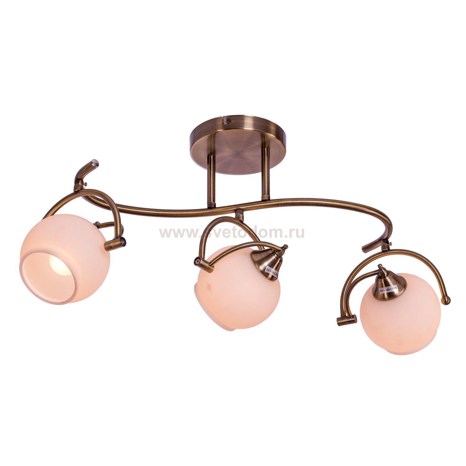 Спотовый светильник 006/3AB MK от бренда ЭкономСвет. Каркас выполнен из материала металл, цвет античная бронза. Плафоны (светорассеиватели) выполнены из материала стекло, цвет белый. Цоколь E27 рассчитан на лампы максимальной мощности до 60 Вт, а максимальная площадь освещения составит до 7 м?.