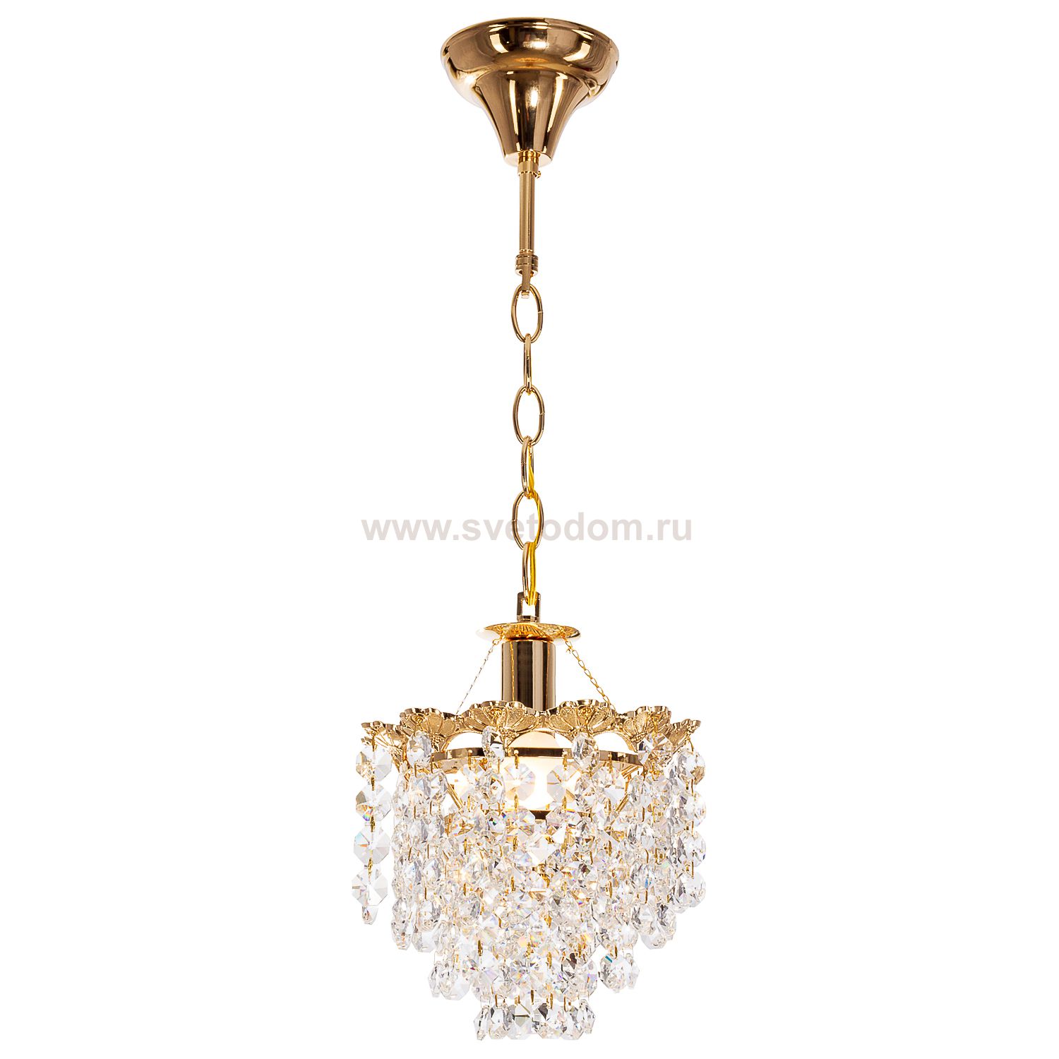 Люстра с хрусталем 2825/1FGD+WT от бренда ЭкономСвет. Каркас выполнен из материала металл, цвет золото. Цоколь E27 рассчитан на лампы максимальной мощности до 60 Вт, а максимальная площадь освещения составит до 2 м?.