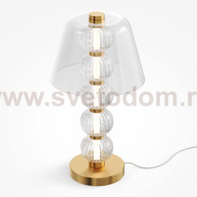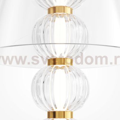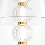 Арматура из металла, цвет – хром. Акцентный декор в виде рельефных сфер из литого стекла. Источник света – светодиодная лента – скрыта под акриловым рассеивателем. Регулируемая высота подвесных светильников.