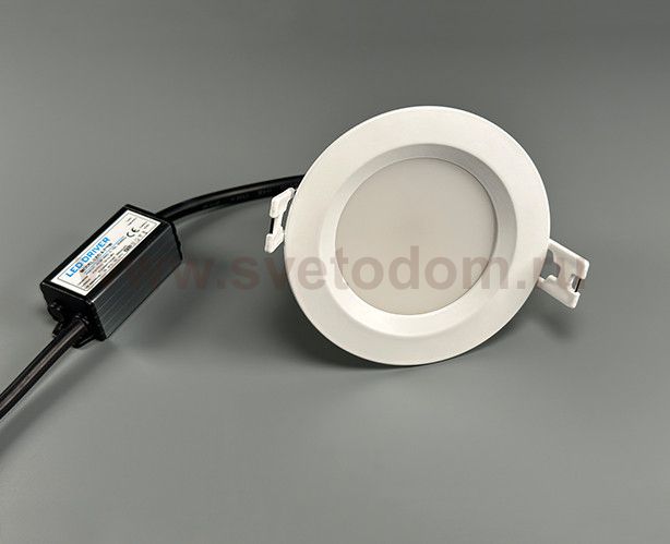Встраиваемый светодиодный светильник с высокой степенью влагозащиты IP65. Укомплектован матовым стеклом, благодаря чему, светильник излучает мягкий рассеянный свет, приятный для глаз. Подходит для влажных помещений.
