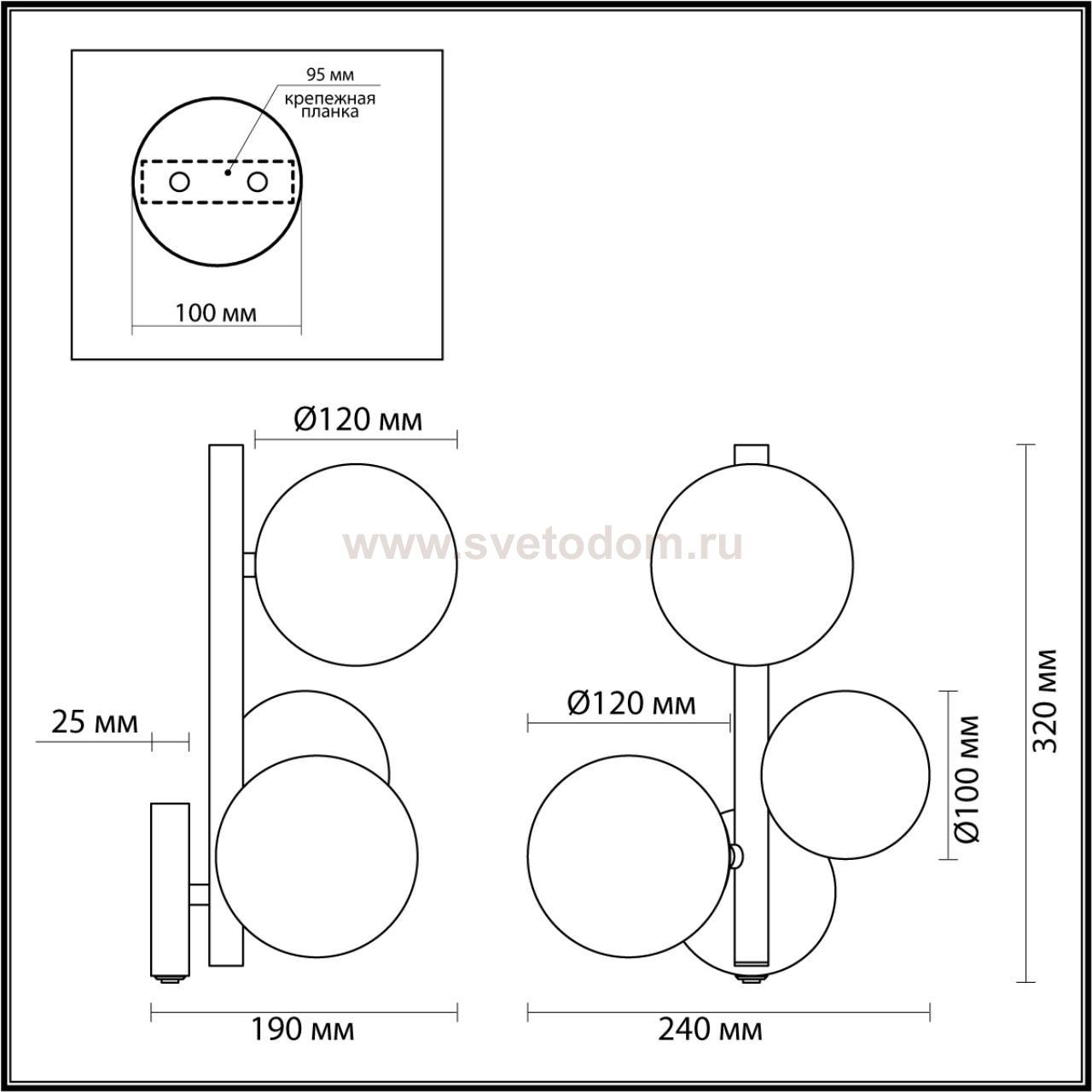 4818/3W MODERN ODL21 333 черный/прозрачный Бра с выкл. G9 3*40W TOVI Штрих-код