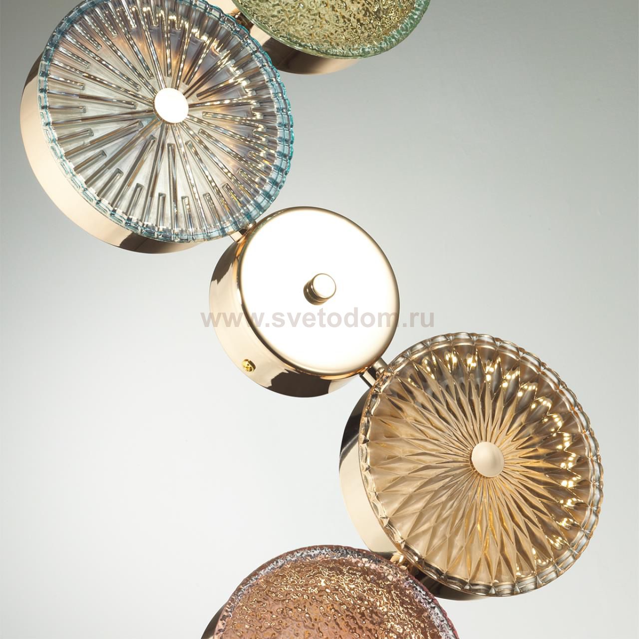 Линия светильников Caramella получила своё название благодаря сходству с карамельными конфетами. В ней сочетаются стекло нежных пастельных оттенков, золотой металл, разнообразные паттерны стёкол и современный LED источник света. Светильники Caramella прекрасно впишутся как в современные, так и в классические интерьеры, благодаря своему изящнуму дизайну. Из подвесных и настенных светильников линии можно создавать разнообразные композиции, внося в интерьер уникальыне акценты.