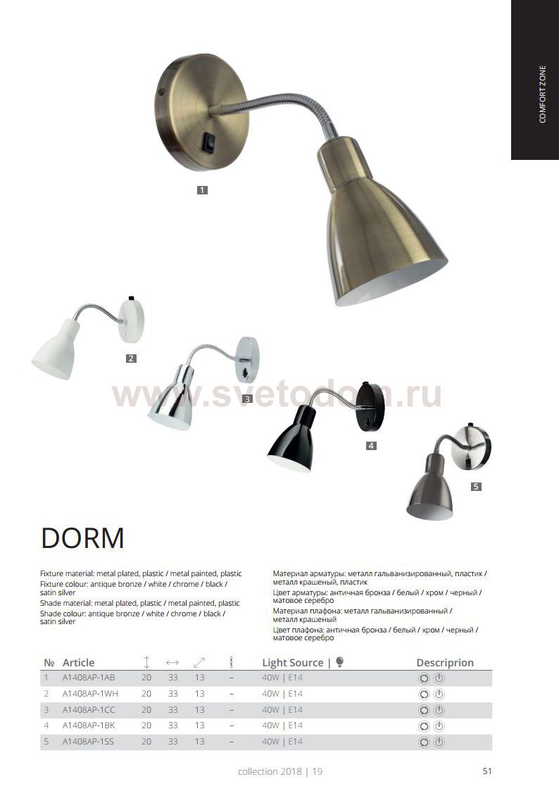 Светильник гибкий с выключателем хромированный Arte lamp A1408AP-1CC Dorm сделает Ваш интерьер современным, стильным и запоминающимся! Наиболее функционально и эстетически привлекательно модель будет смотреться в гостиной, зале, холле или другой комнате. А в комплекте с люстрой и торшером из этой же коллекции сделает интерьер по-дизайнерски профессиональным и законченным.