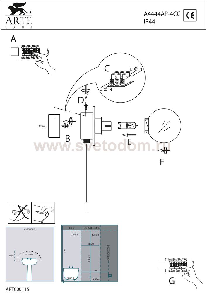 Настенно потолочный светильник ARTE Lamp (арте ламп) A4444AP-4CC подходит как для установки в вертикальном положении - на стены, так и для установки в горизонтальном - на потолок. Для установки настенно потолочных светильников на натяжной потолок необходимо использовать светодиодные лампы LED, которые экономнее ламп Ильича (накаливания) в 10 раз, выделяют мало тепла и не дадут расплавиться Вашему потолку.