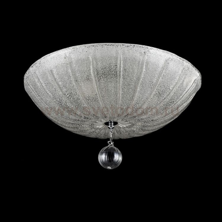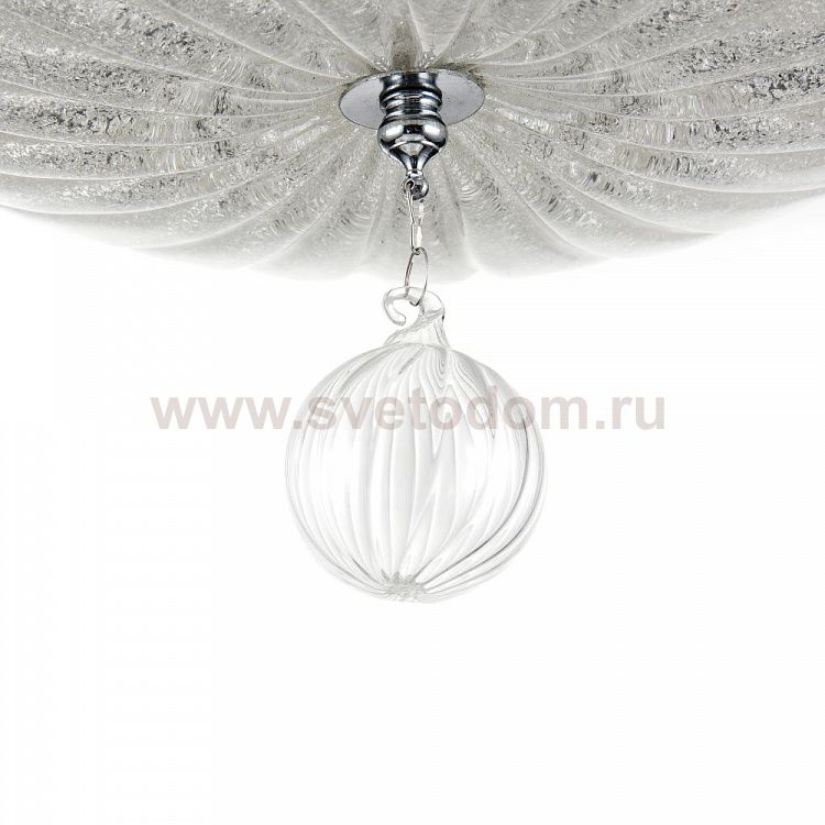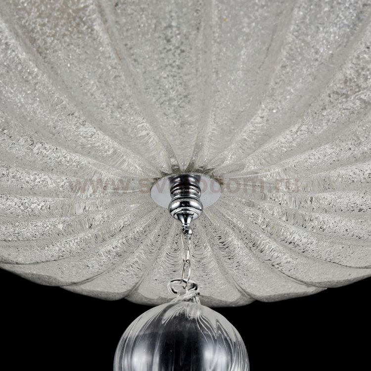 Арматура – металл, цвет – хром. Плафон – прессованное стекло, декор – стеклянная крошка. Подвеска – выдувное рельефное стекло.