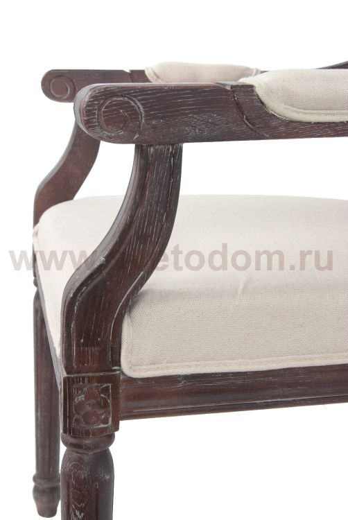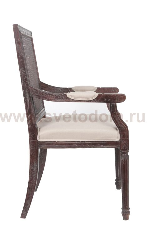 Стул Wilton создан в строгом дизайне на основе массива дуба и ротангового дерева. Для обивки использована приятная на ощупь льняная ткань светло-серого (сиденье) и коричнево-серого (спинка) расцветок. Квадратная спинка по периметру обрамлена деревянной рамкой, ножки украшены резьбой, на подлокотниках присутствуют мягкие накладки.
