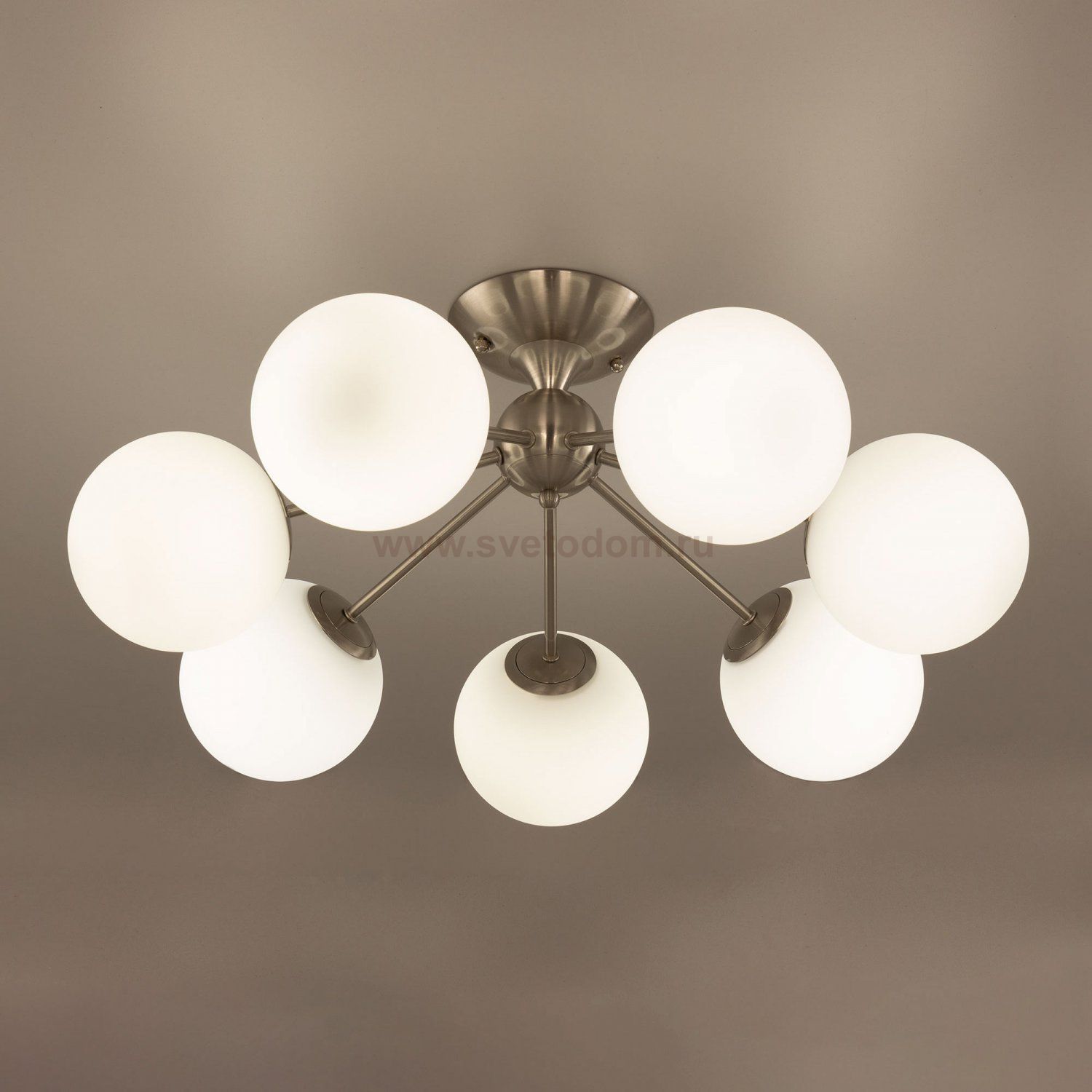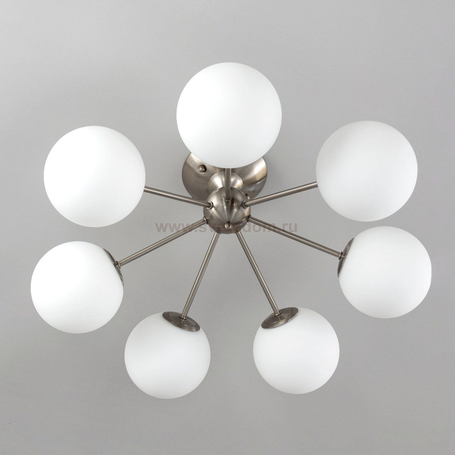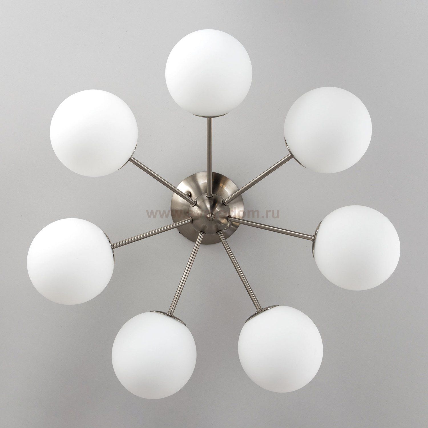 Потолочная люстра Citilux Томми CL102174 для интерьеров, оформленных в современном стиле. Корпус металлический, цвет матовый хром. Плафоны стеклянные, в форме шара, цвет белый матовый. В изделии 7 ламп с цоколем Е14, максимальной мощностью для ламп накаливания 40Вт. Светодиодные лампы можно использовать более яркие. Площадь освещения около 17м². Модель подходит для всех типов потолков, в том числе натяжных. Тип крепления-планка.