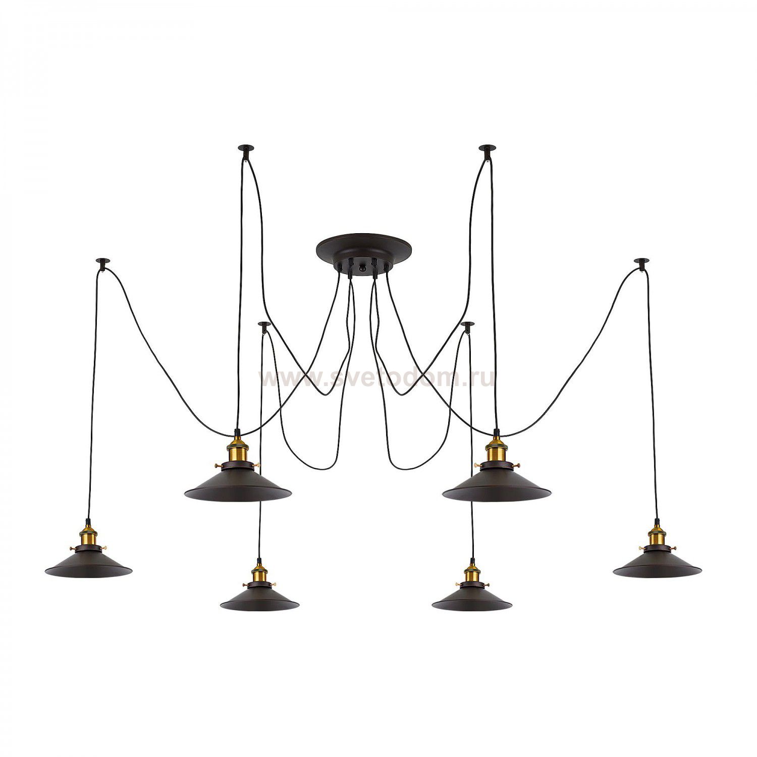 Люстра c многоточечным креплением проводов к потолку, длина провода 205см. Точеный стакан патрона, цвет - старая бронза. Штрих-код