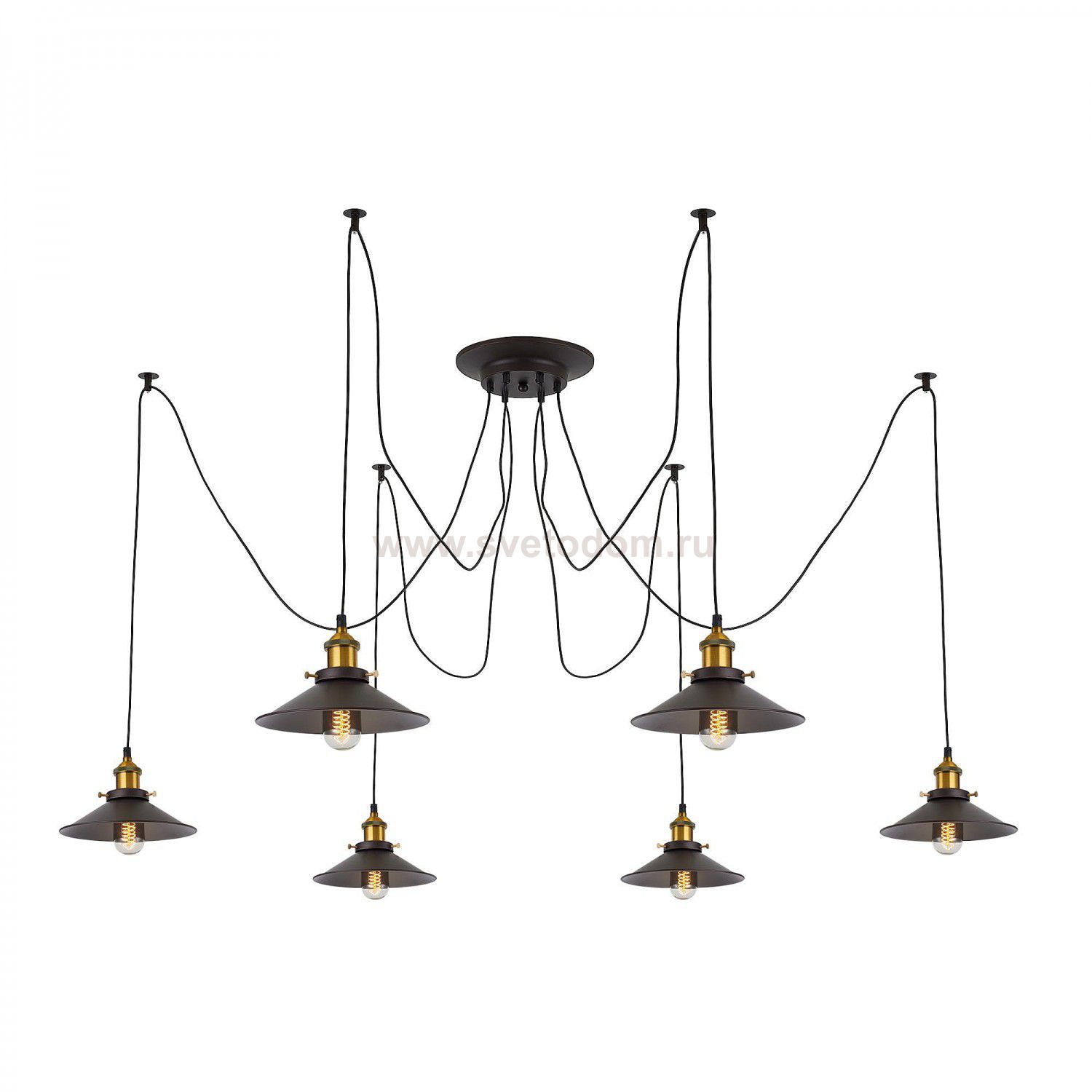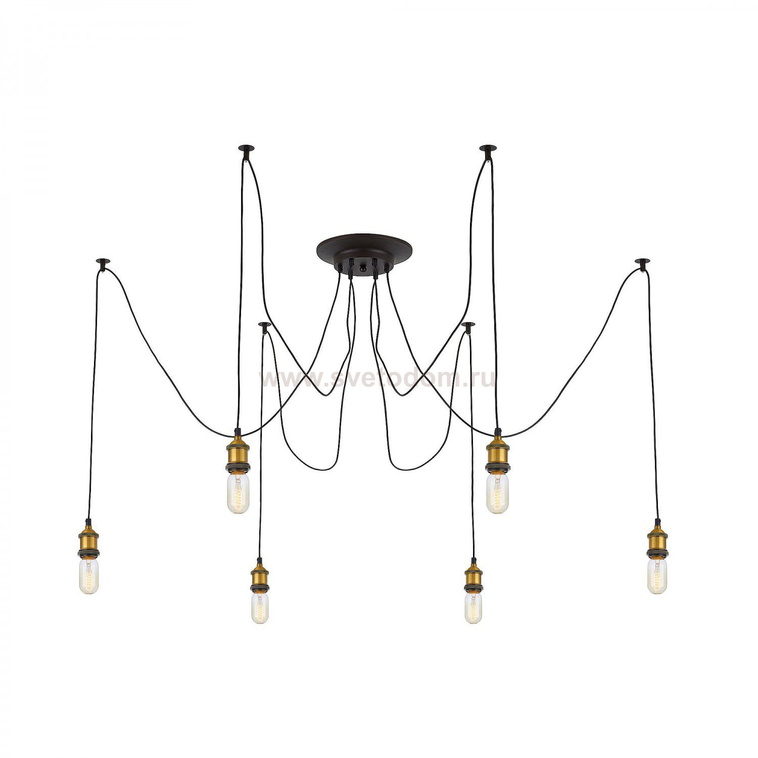 Люстра c многоточечным креплением проводов к потолку, длина провода 205см. Точеный стакан патрона, цвет - старая бронза. Комментарий